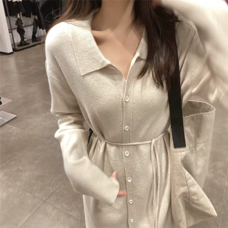 秋冬女装温柔风内搭过膝长款毛衣裙新款宽松打底针织连衣裙子批发