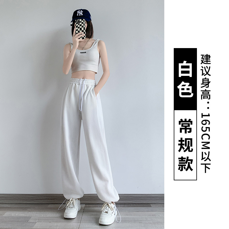【韩菲】运动裤女秋冬季新款高腰宽松加绒休闲阔腿裤百搭抽绳卫裤