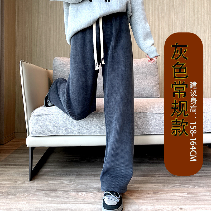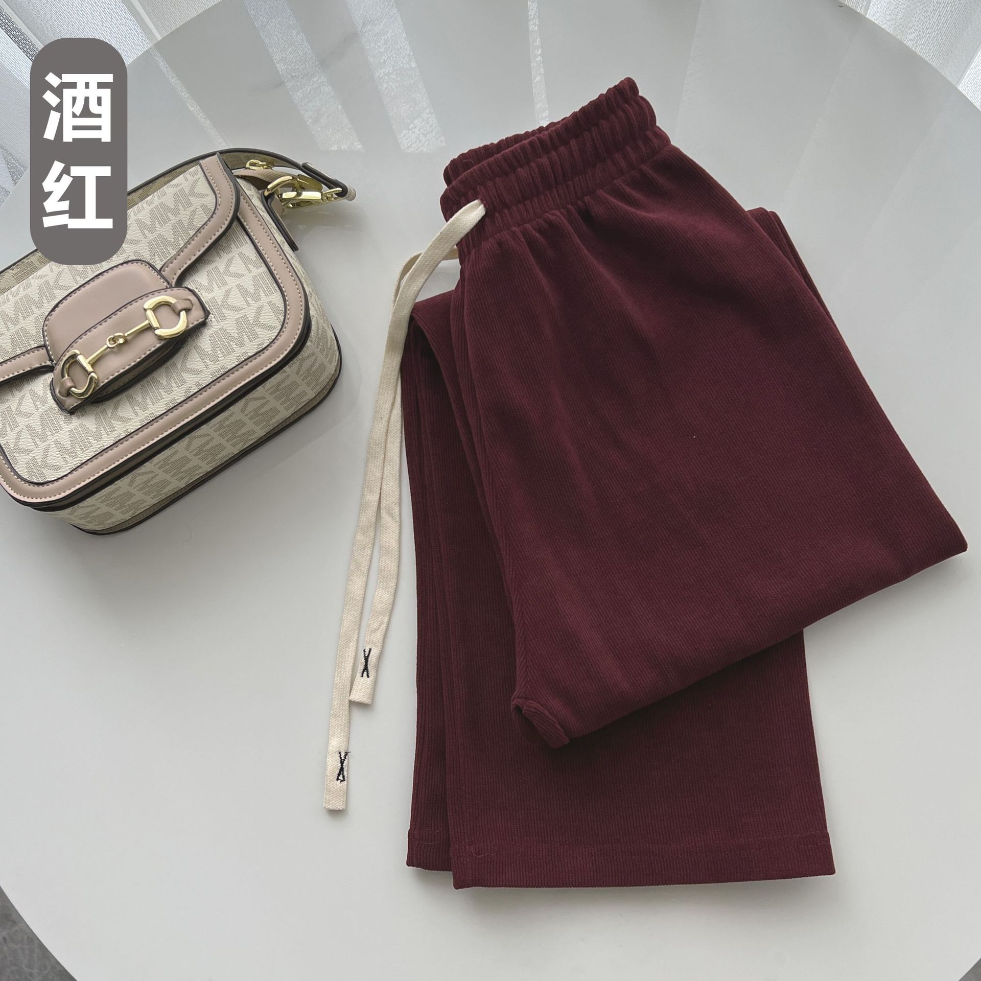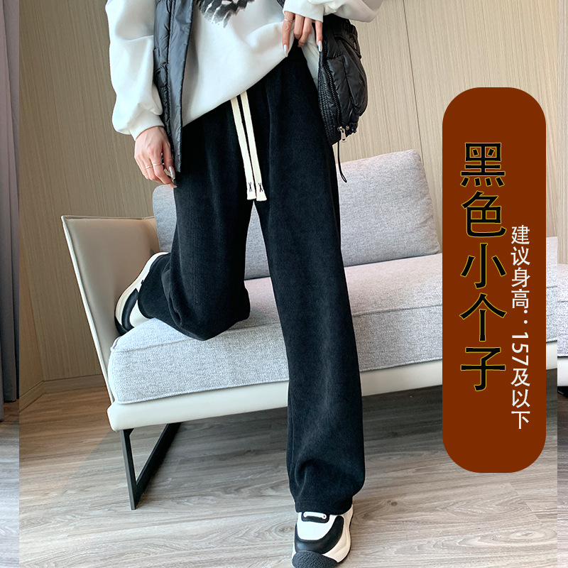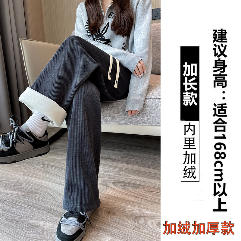 秋冬新款欧棉绒阔腿裤女高腰显瘦宽松抽绳百搭直筒垂感口袋休闲裤