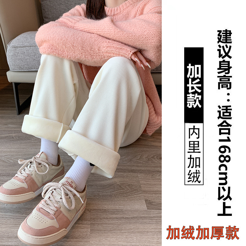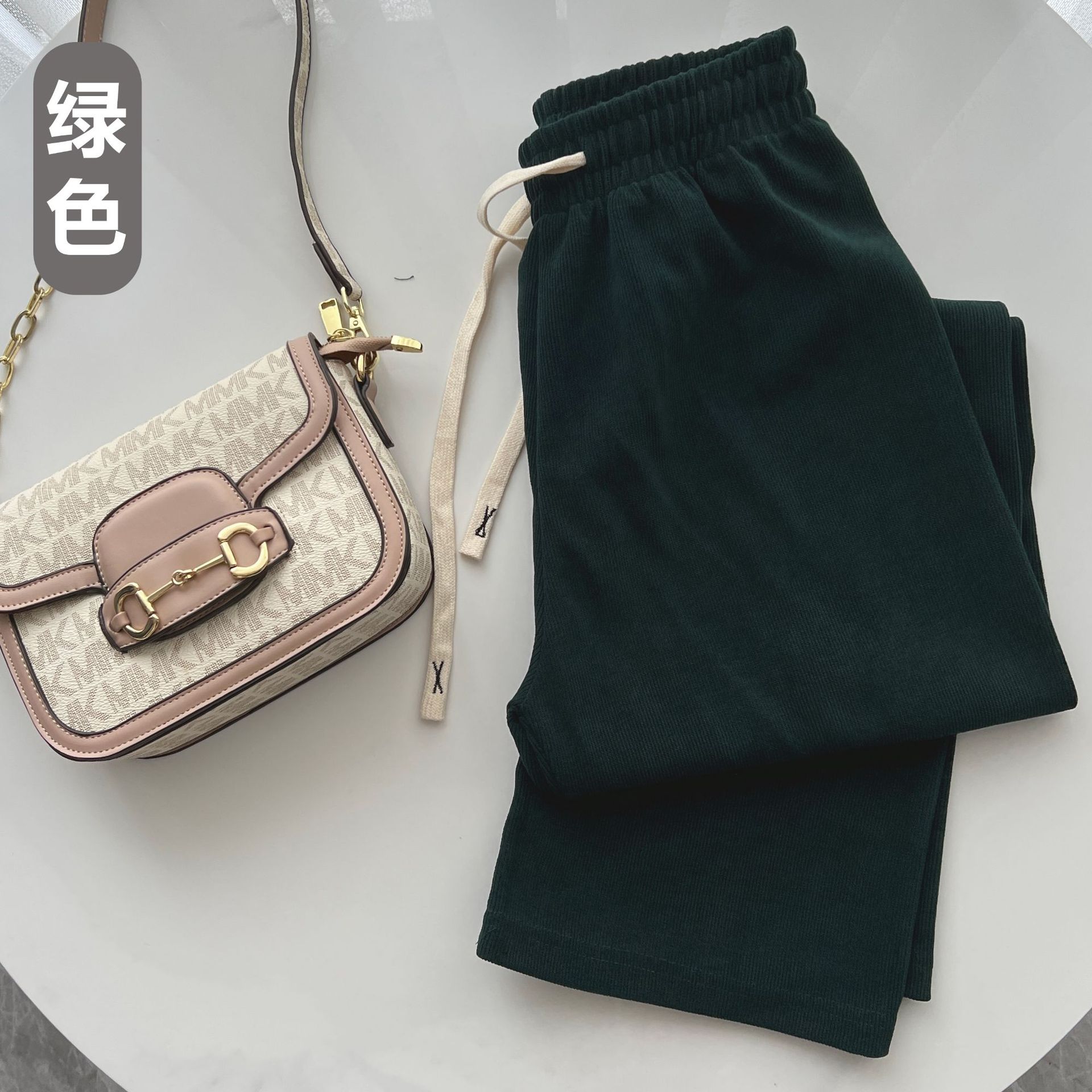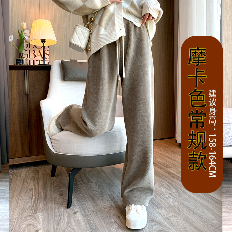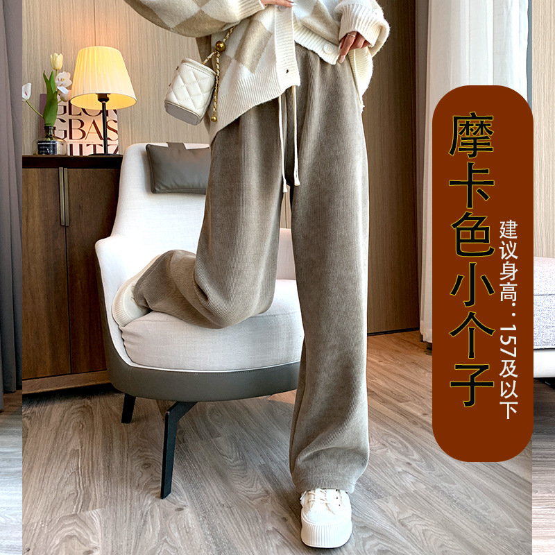秋冬新款欧棉绒阔腿裤女高腰显瘦宽松抽绳百搭直筒垂感口袋休闲裤