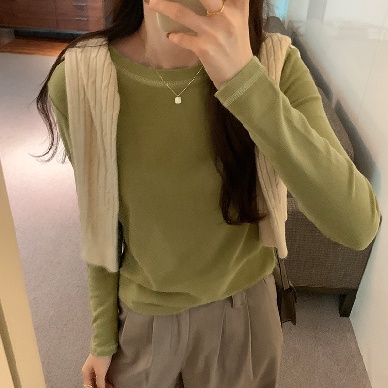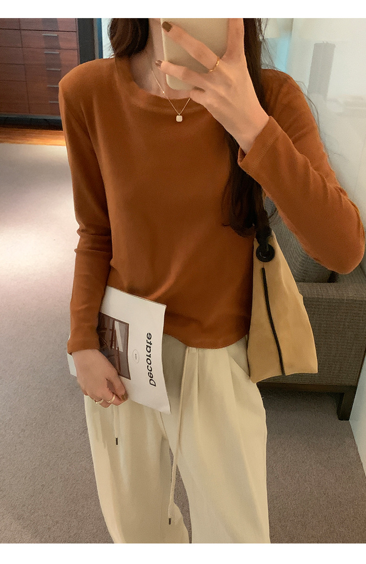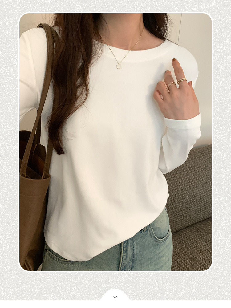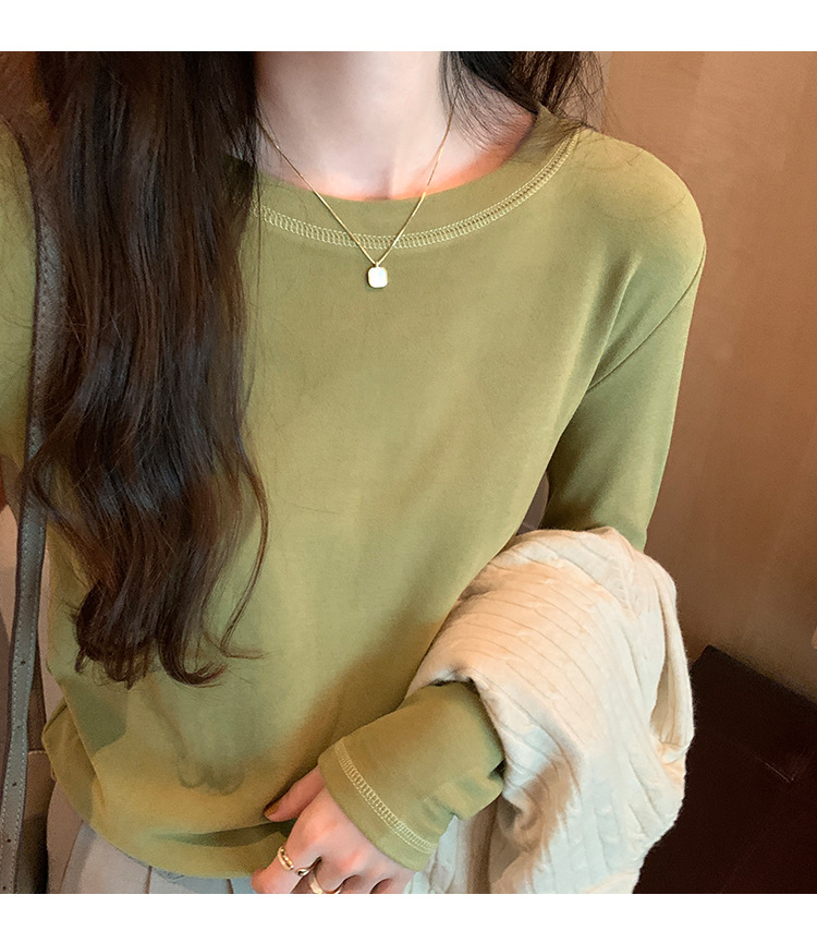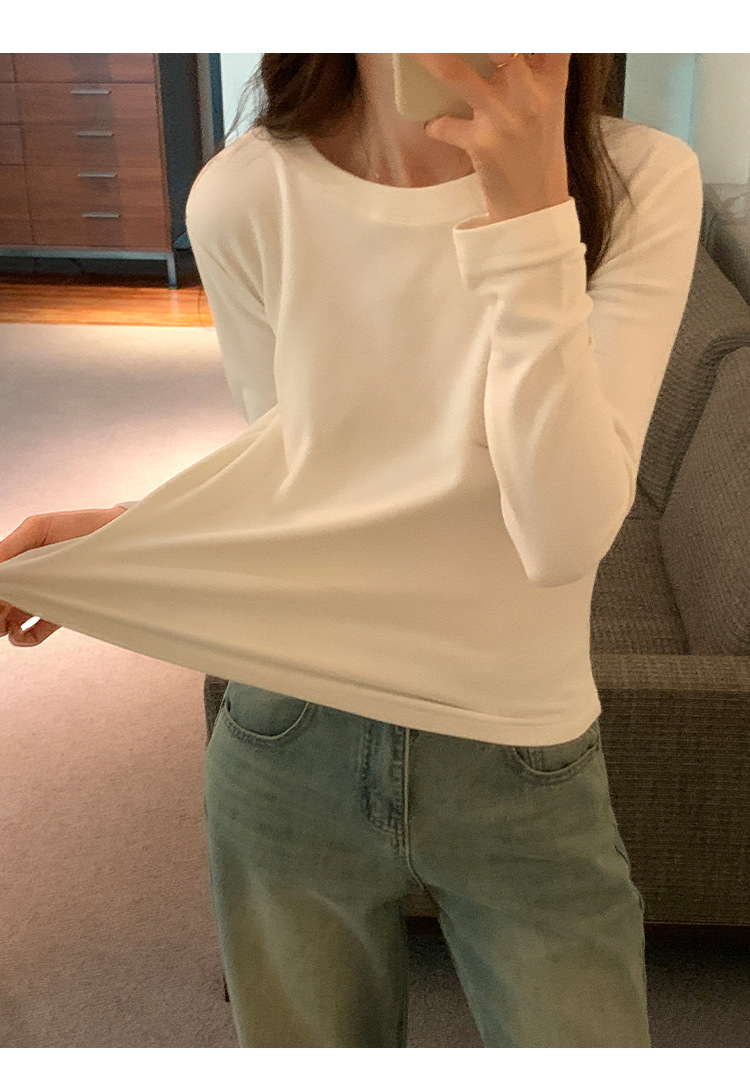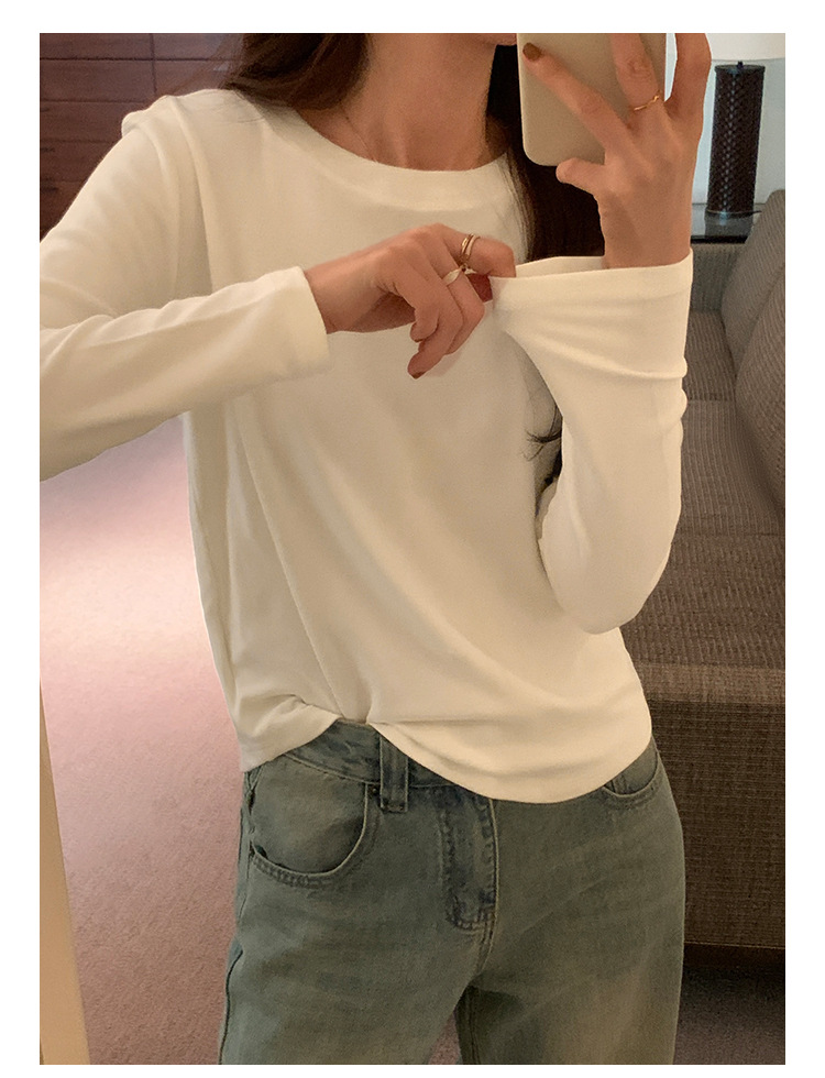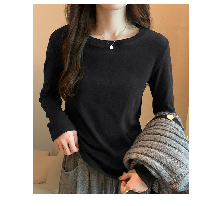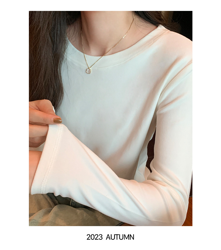 圆领德绒打底衫女内搭秋冬百搭加绒韩版白色长袖t恤修身保暖上衣