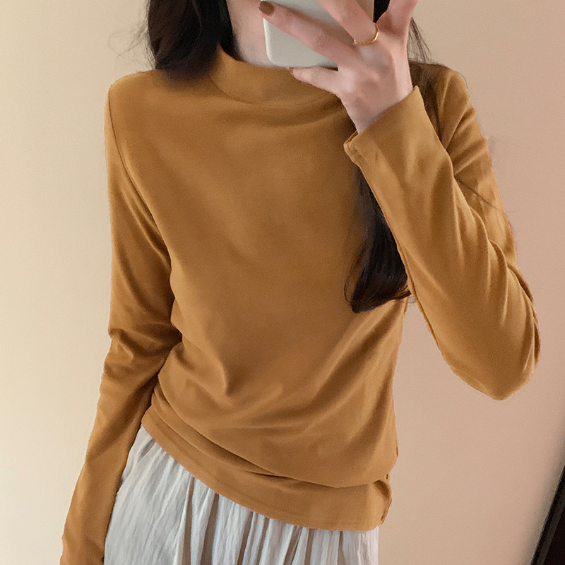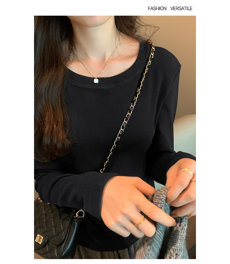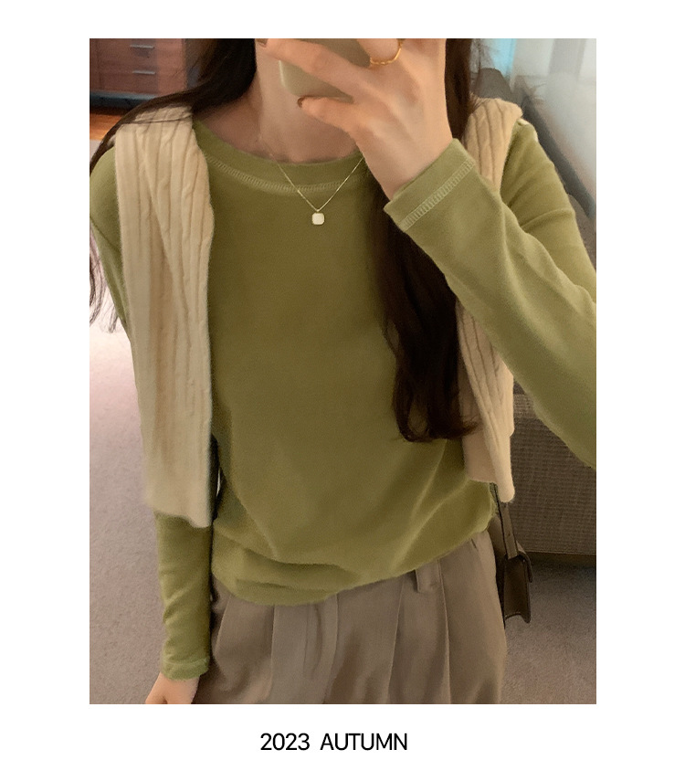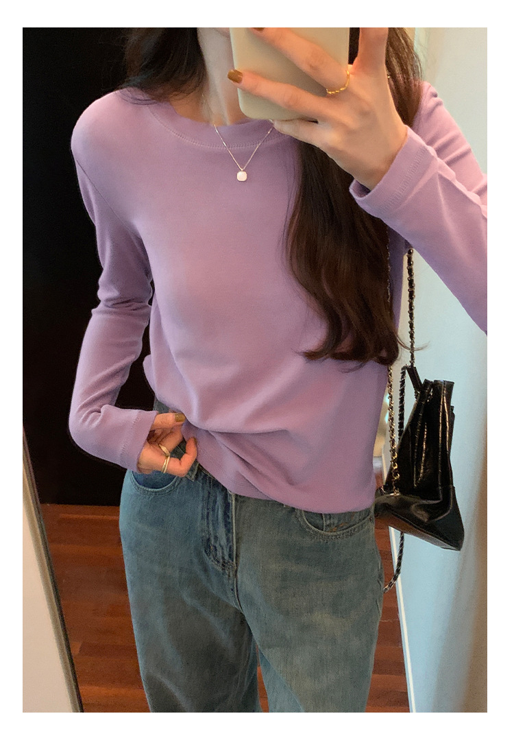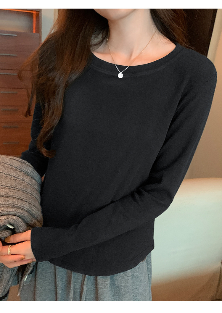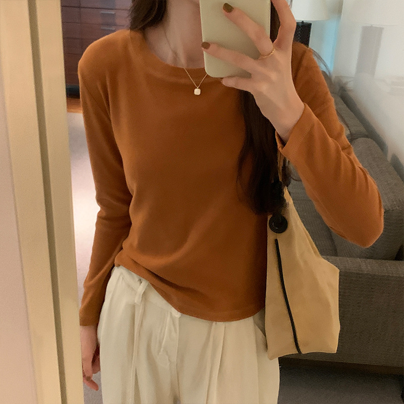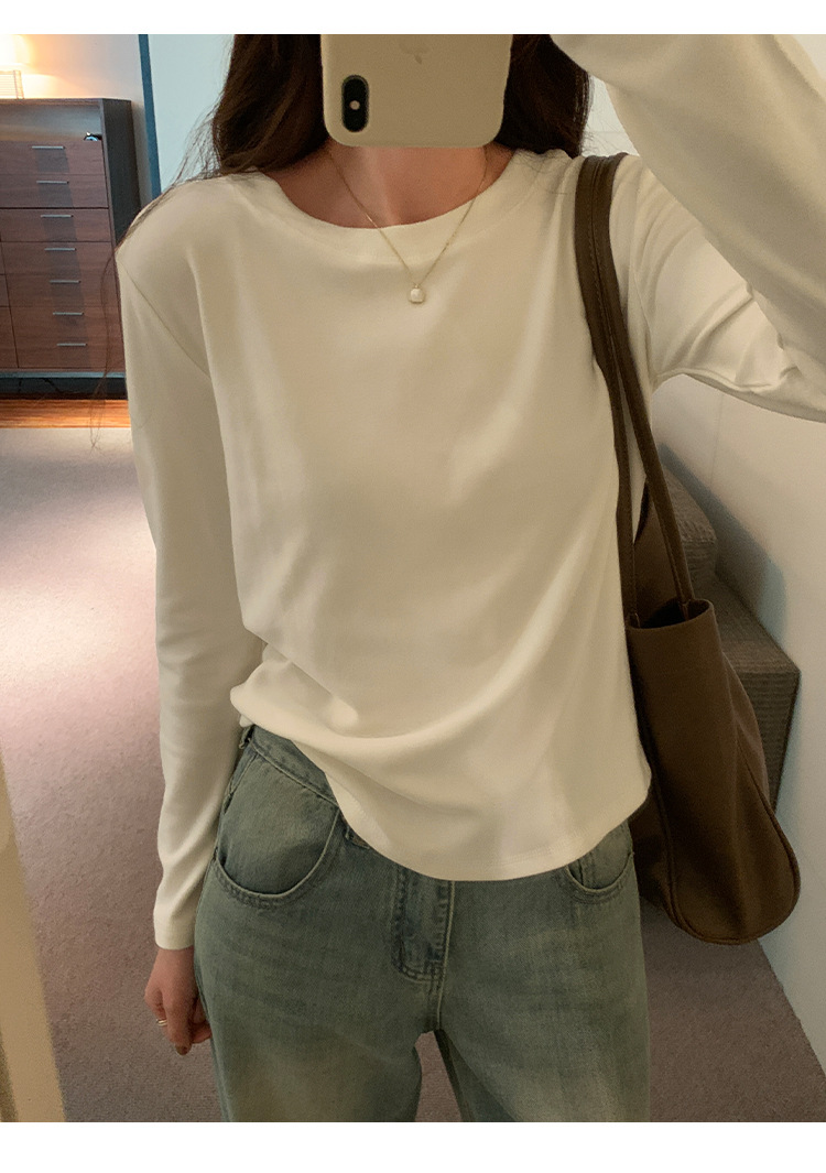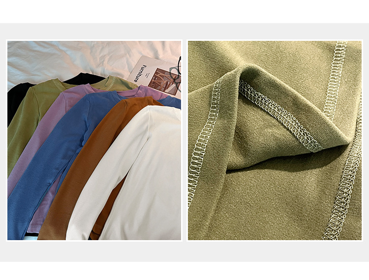 圆领德绒打底衫女内搭秋冬百搭加绒韩版白色长袖t恤修身保暖上衣