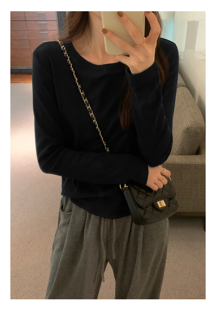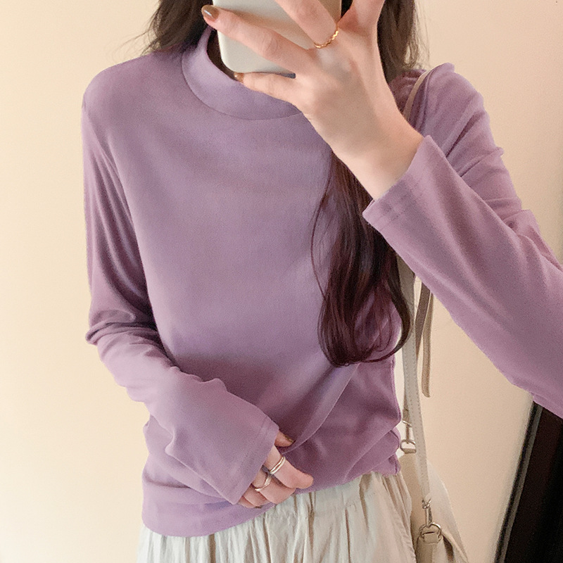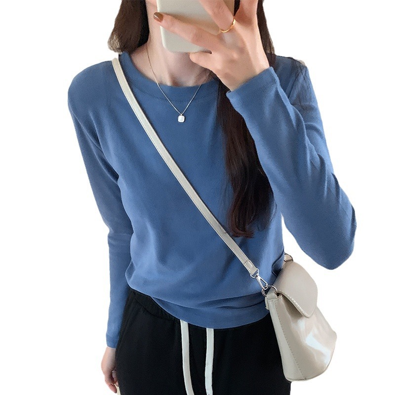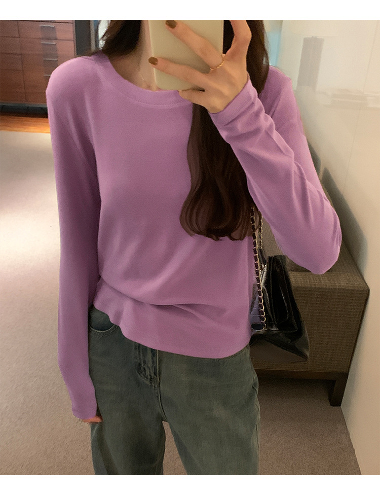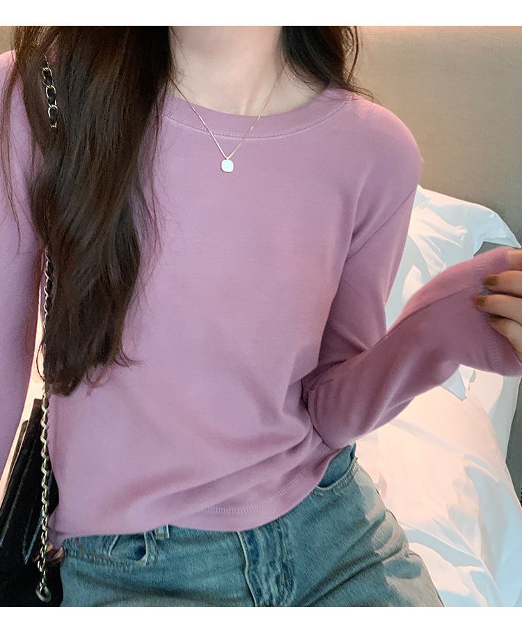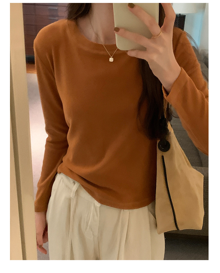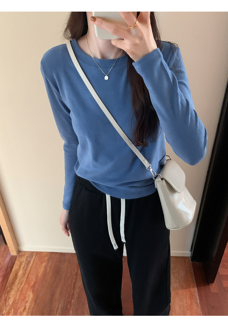 圆领德绒打底衫女内搭秋冬百搭加绒韩版白色长袖t恤修身保暖上衣