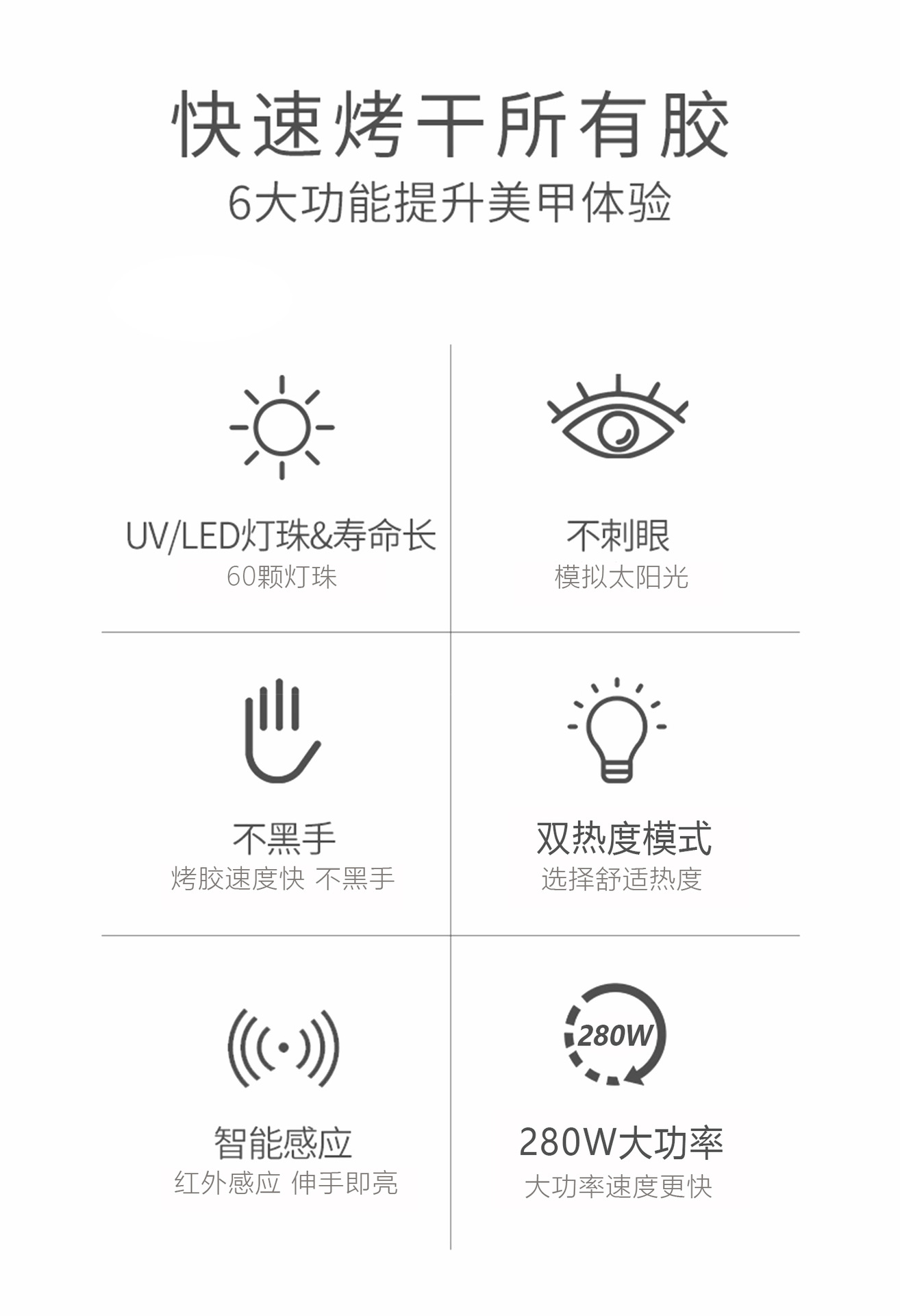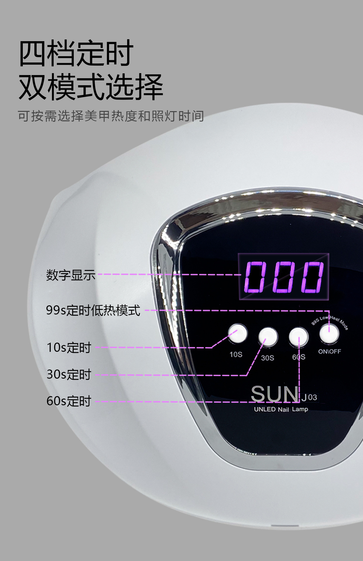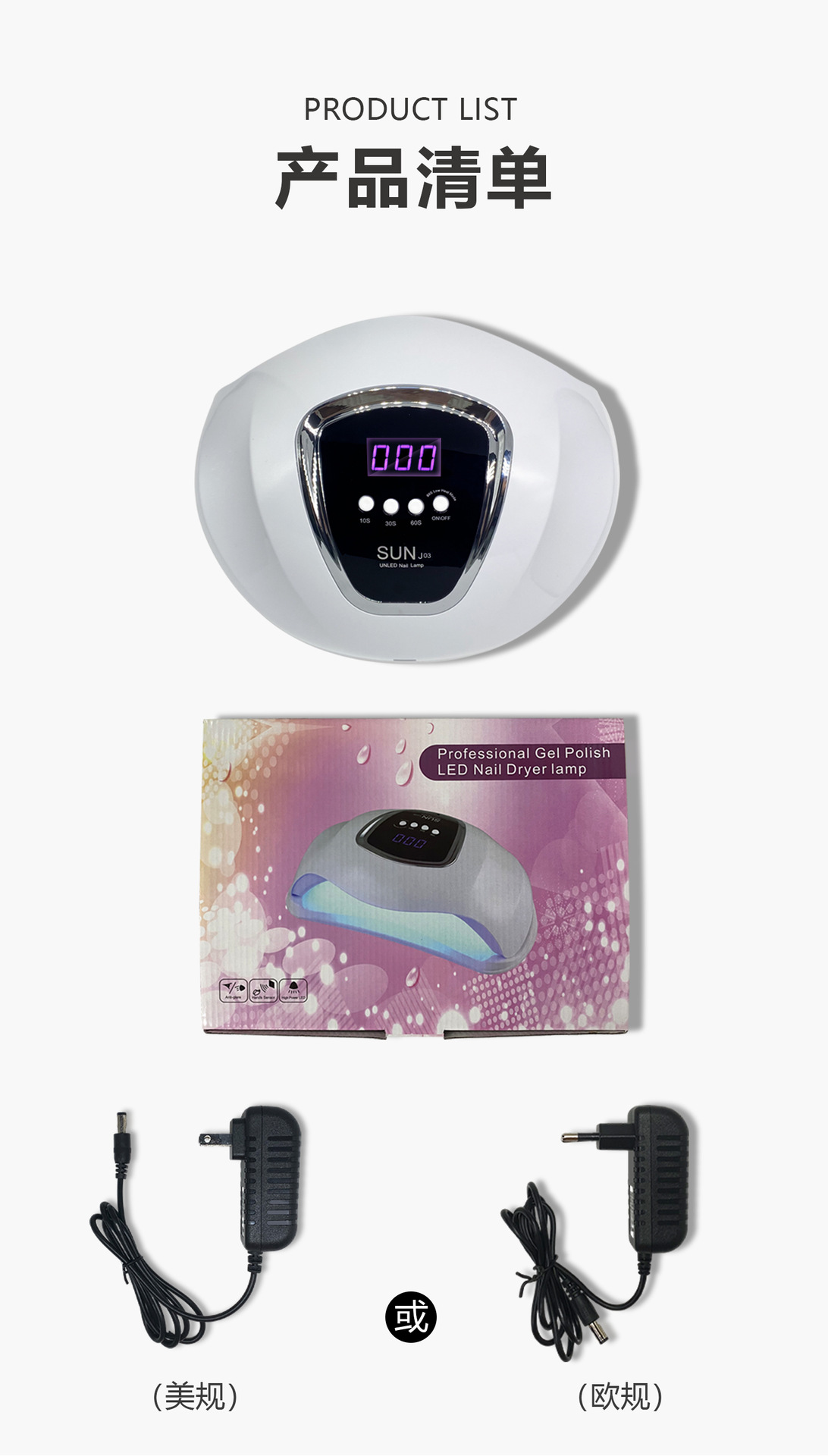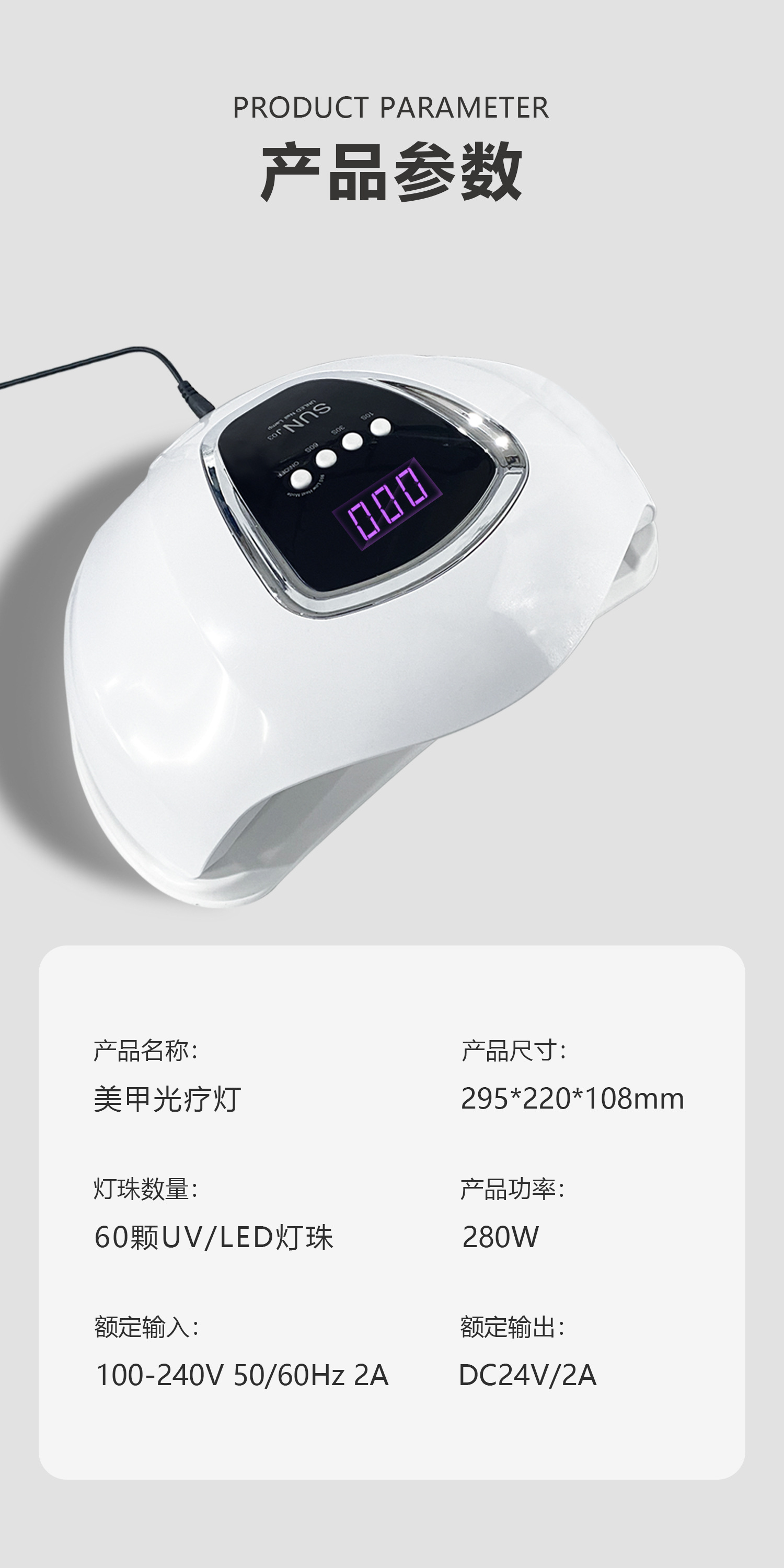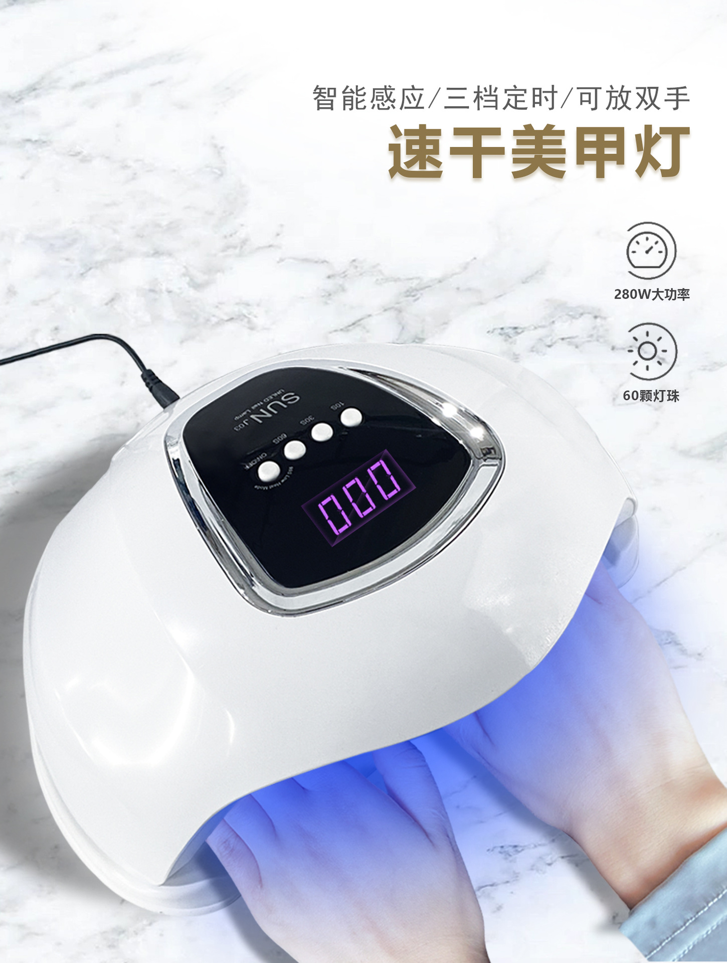 新款双手美甲灯280W大功率快干LED指甲油胶烤灯UV烘甲机J03光疗机
