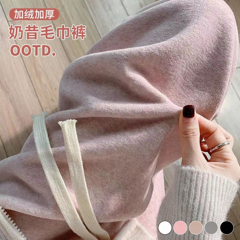 秋冬新款高腰抽绳糯米毛巾羊绒阔腿裤宽松复合拖地休闲直筒裤子女