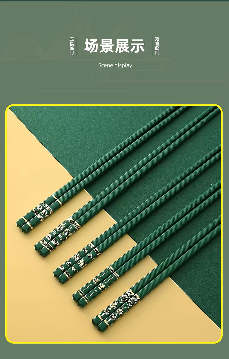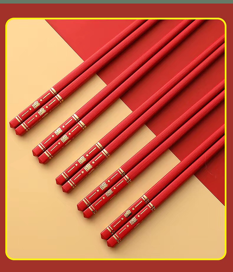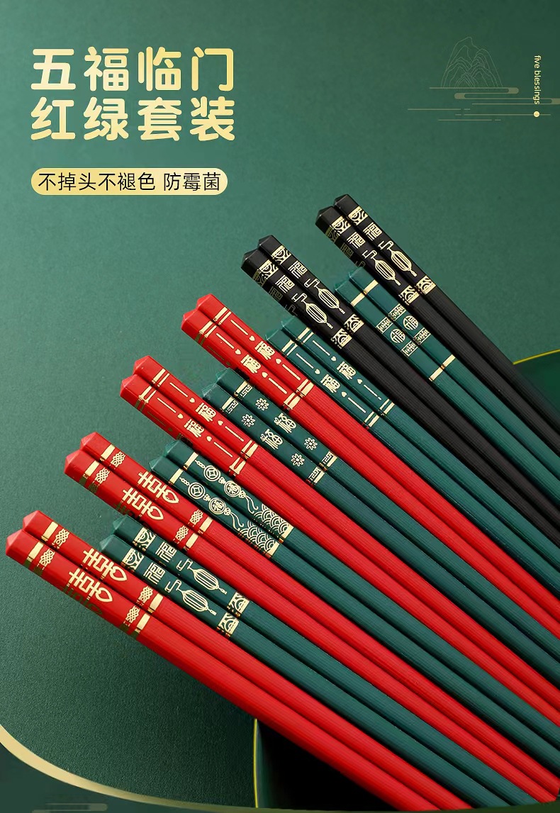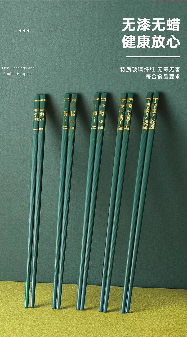 五福临门家用喜庆新款防滑 防霉耐 高温 易清洗高档酒店烫金筷子