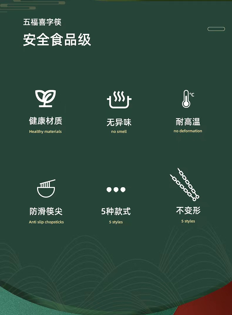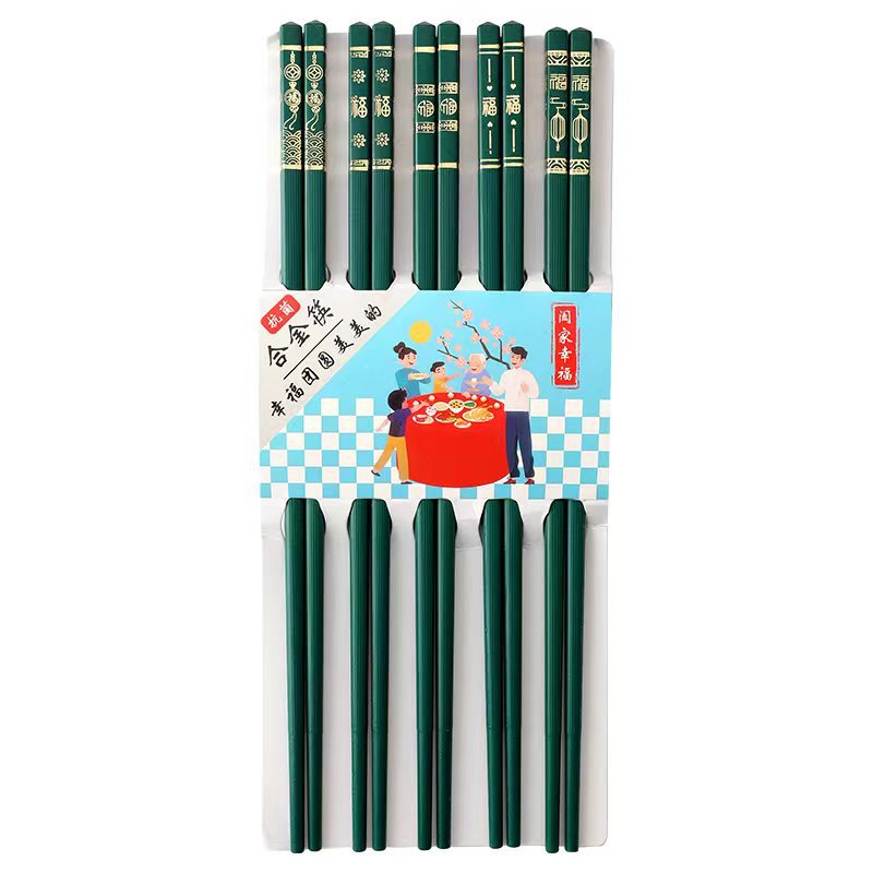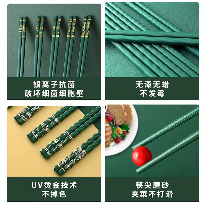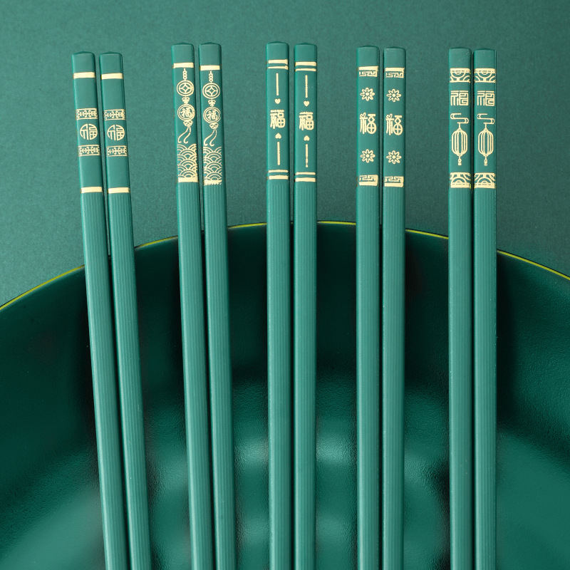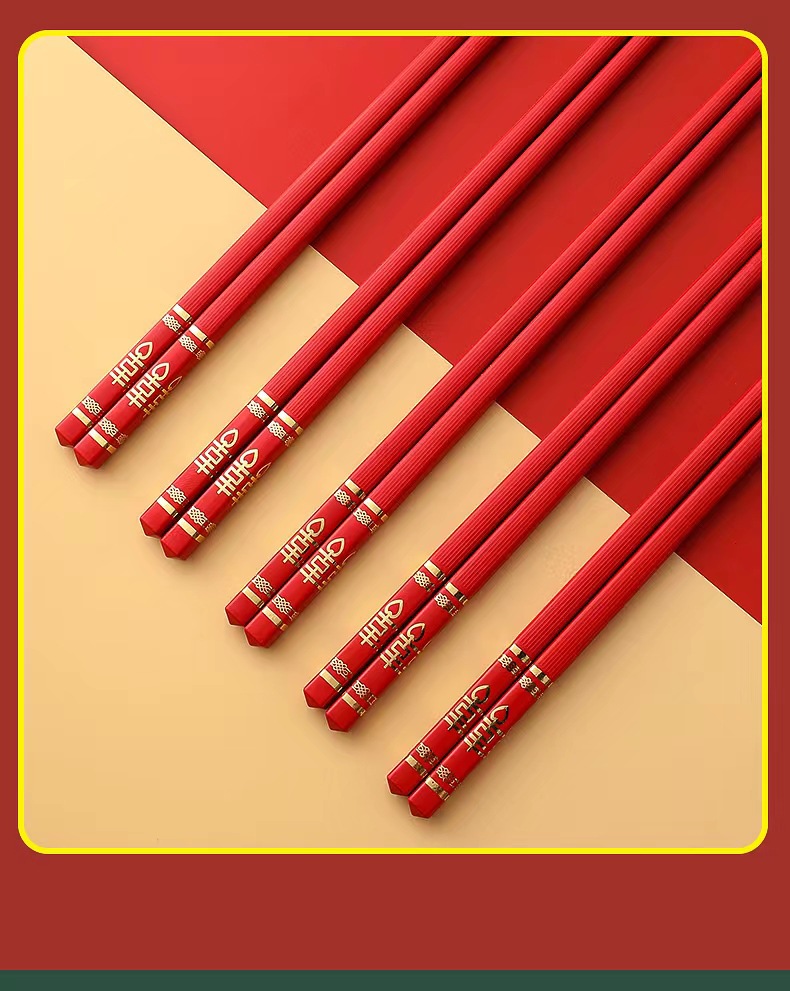 五福临门家用喜庆新款防滑 防霉耐 高温 易清洗高档酒店烫金筷子