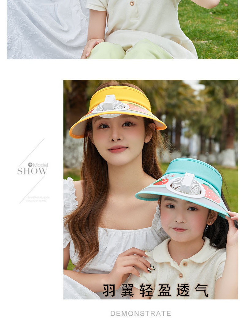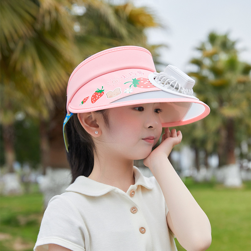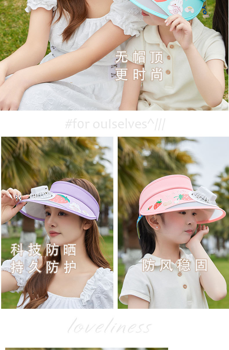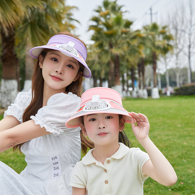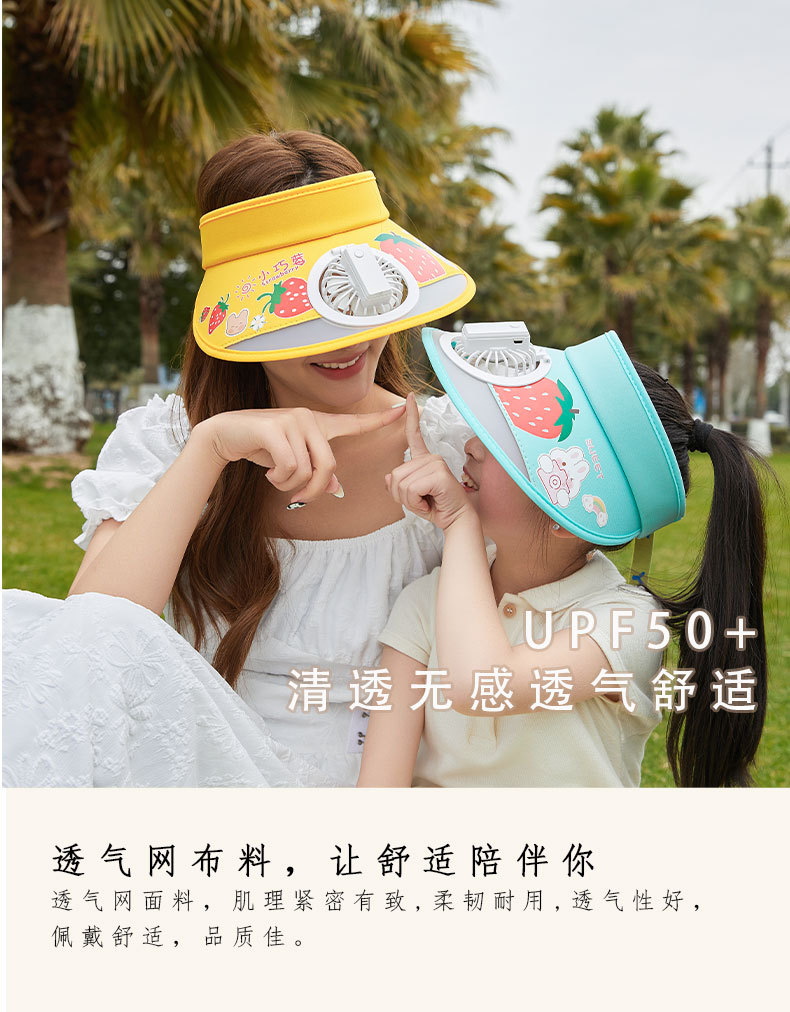 儿童帽子夏季防晒帽宝宝遮阳凉帽男童女童大檐风扇空顶太阳帽亲子