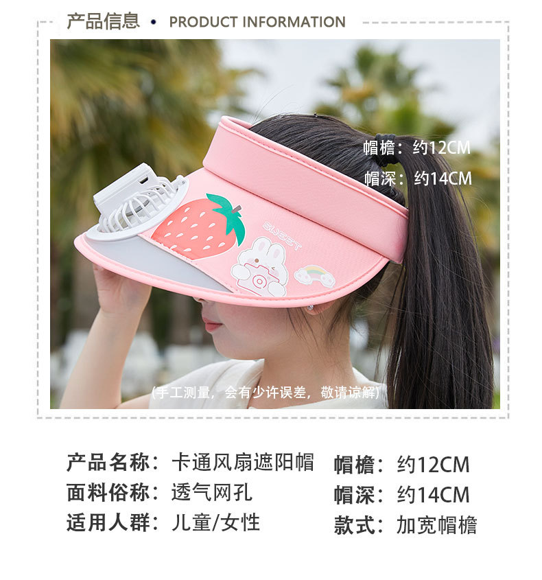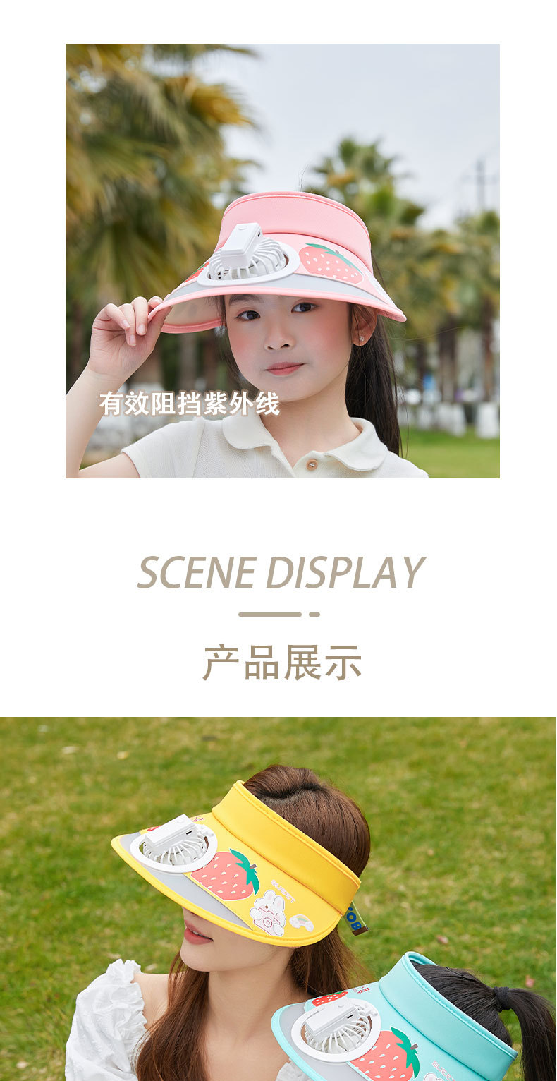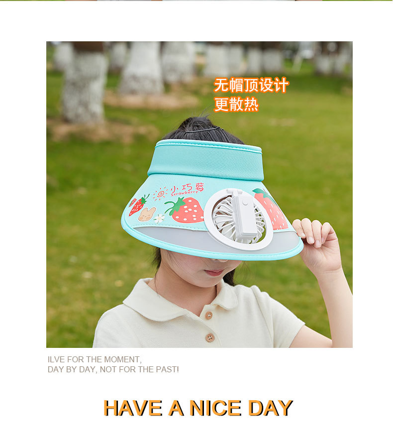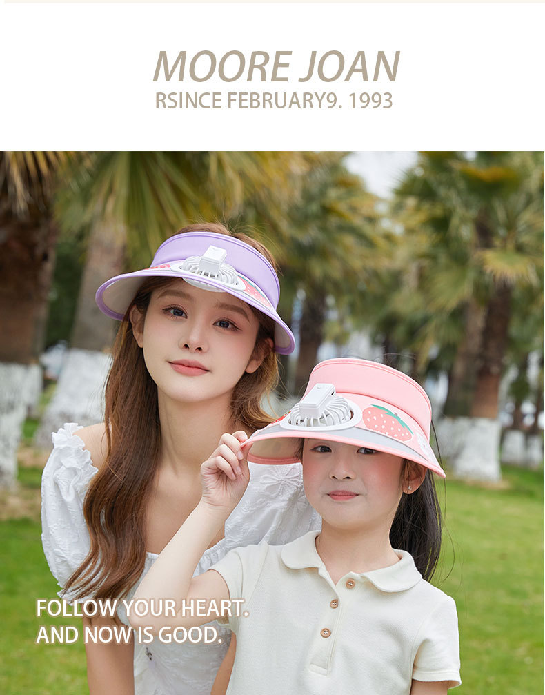 儿童帽子夏季防晒帽宝宝遮阳凉帽男童女童大檐风扇空顶太阳帽亲子