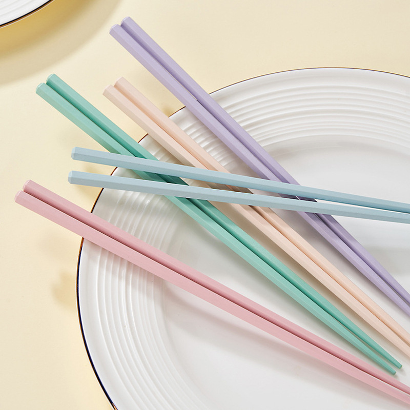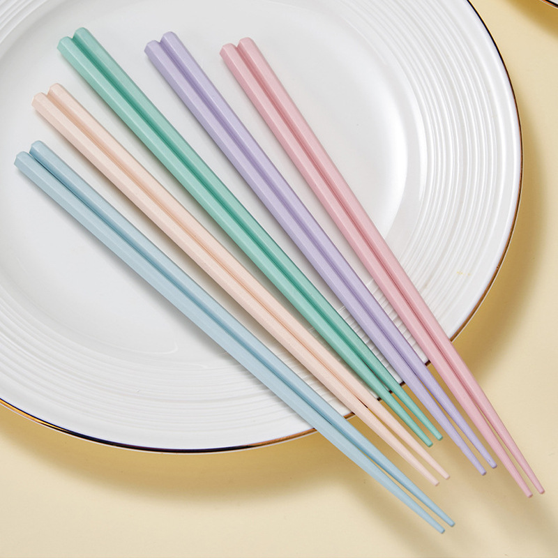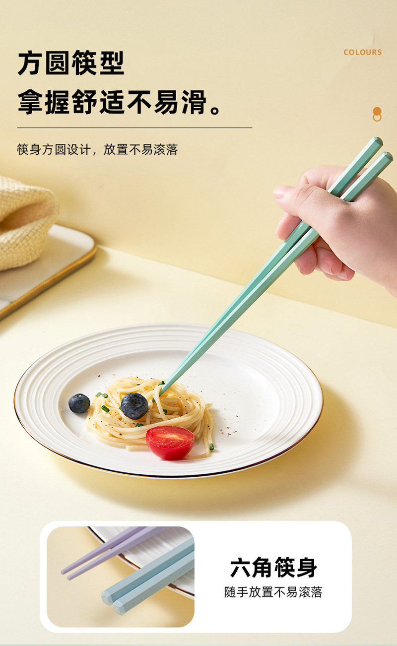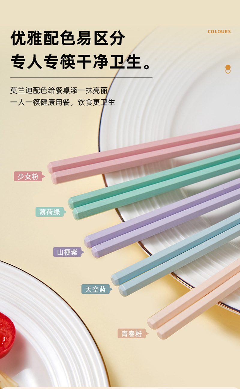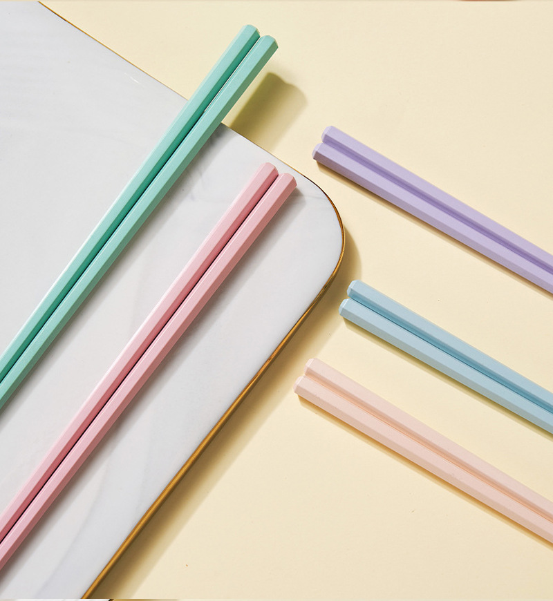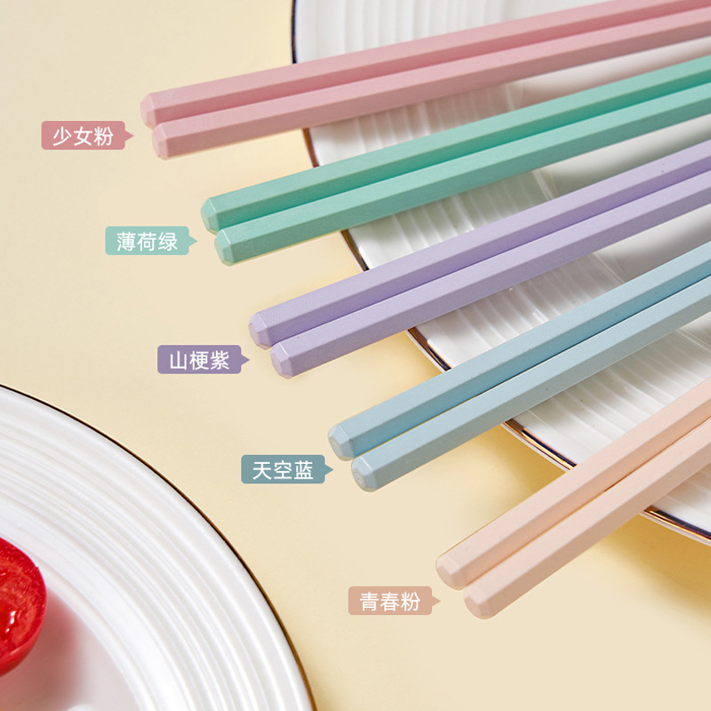 新款马卡龙色六角合金筷子5双装家用一人一筷高颜值防滑筷子礼品