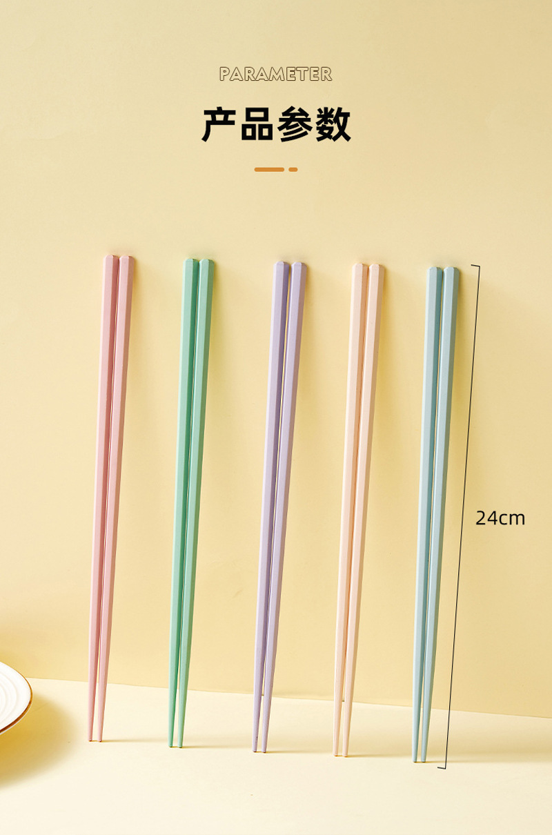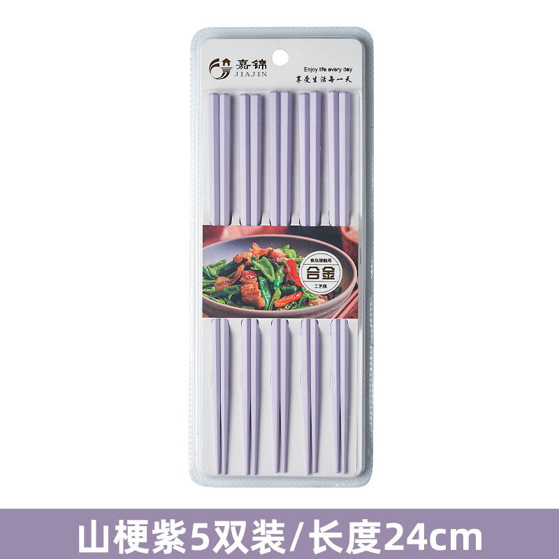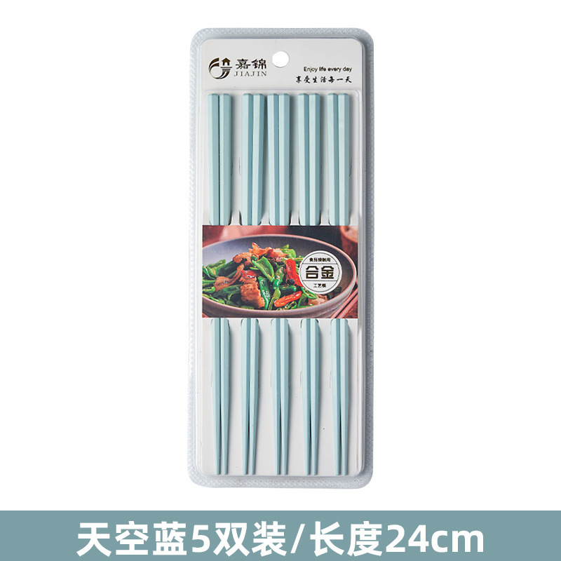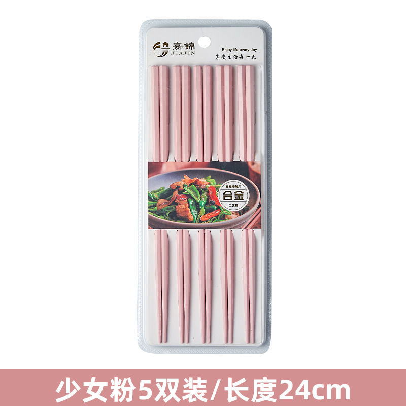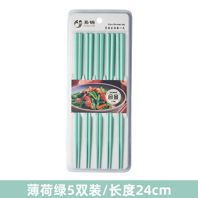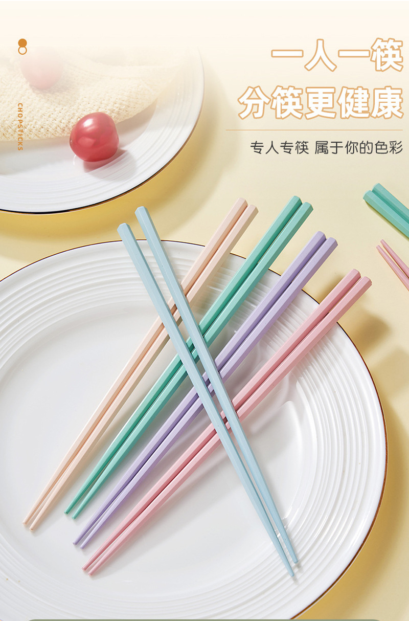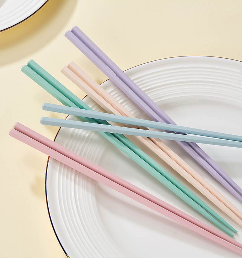 新款马卡龙色六角合金筷子5双装家用一人一筷高颜值防滑筷子礼品