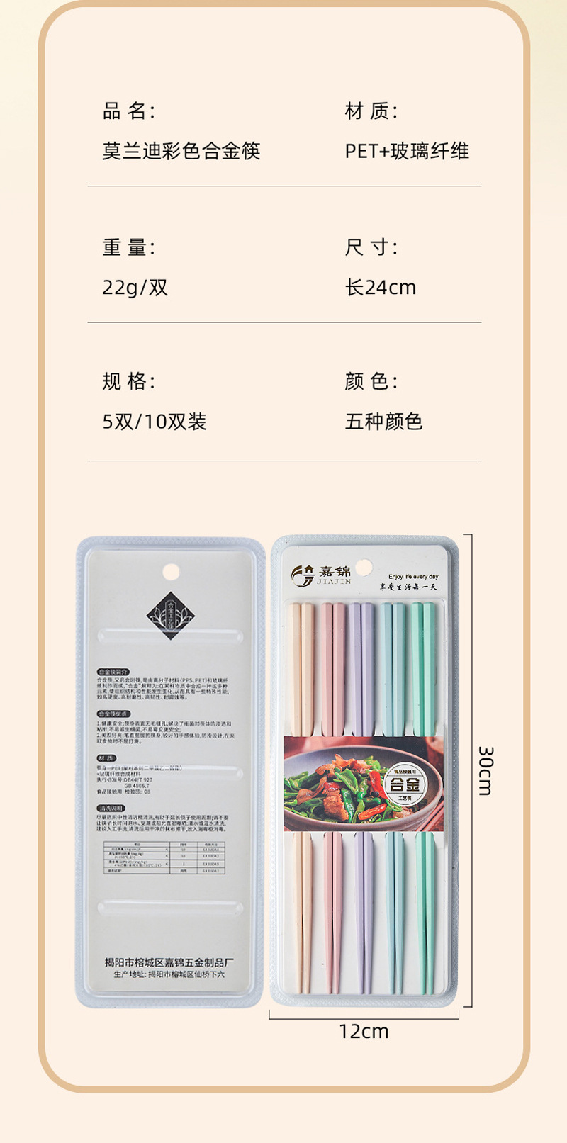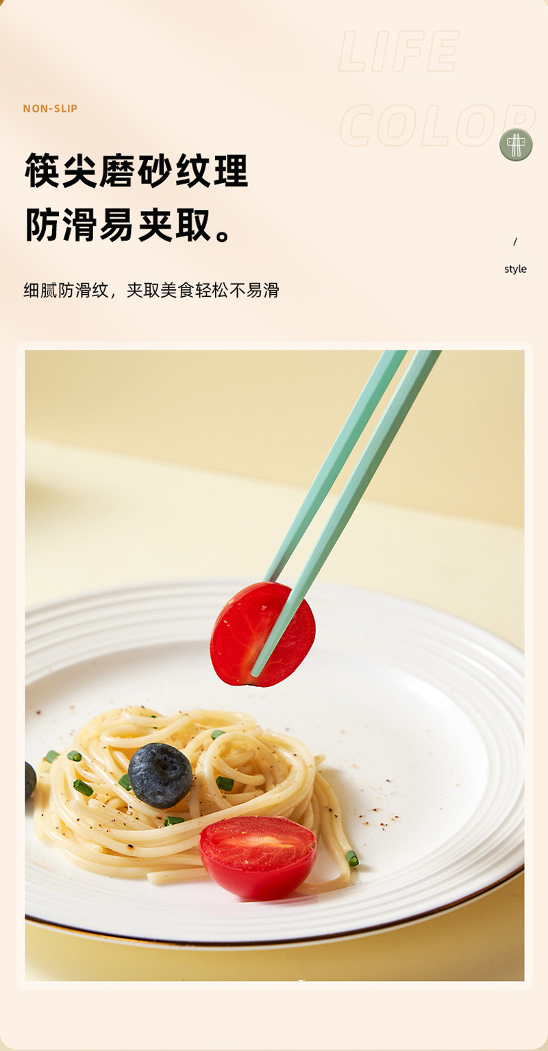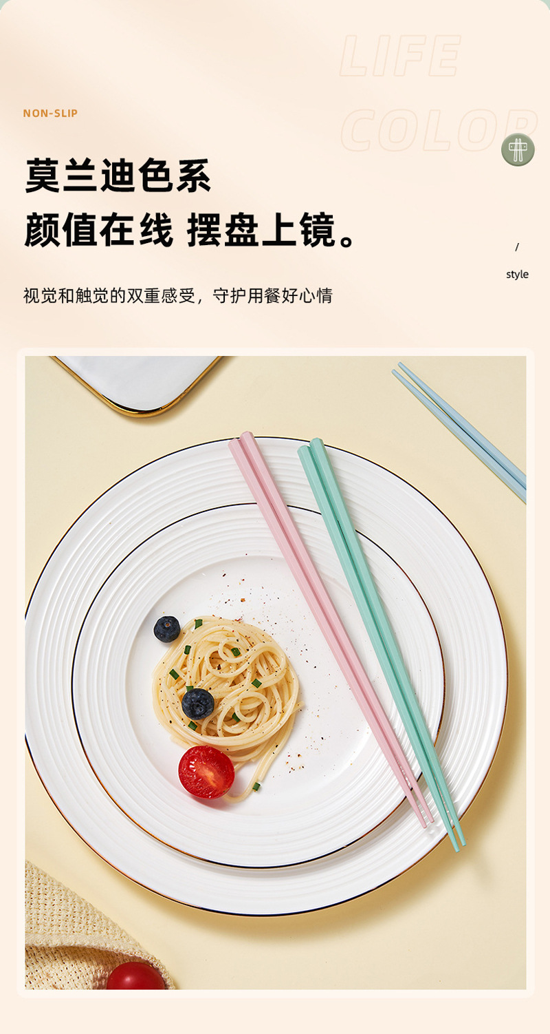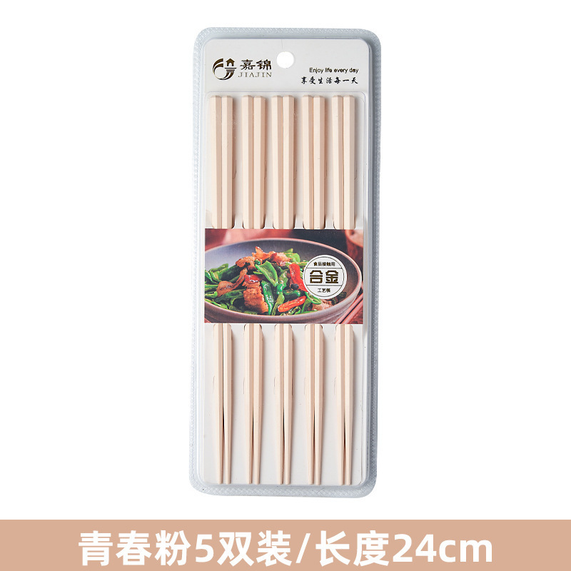 新款马卡龙色六角合金筷子5双装家用一人一筷高颜值防滑筷子礼品