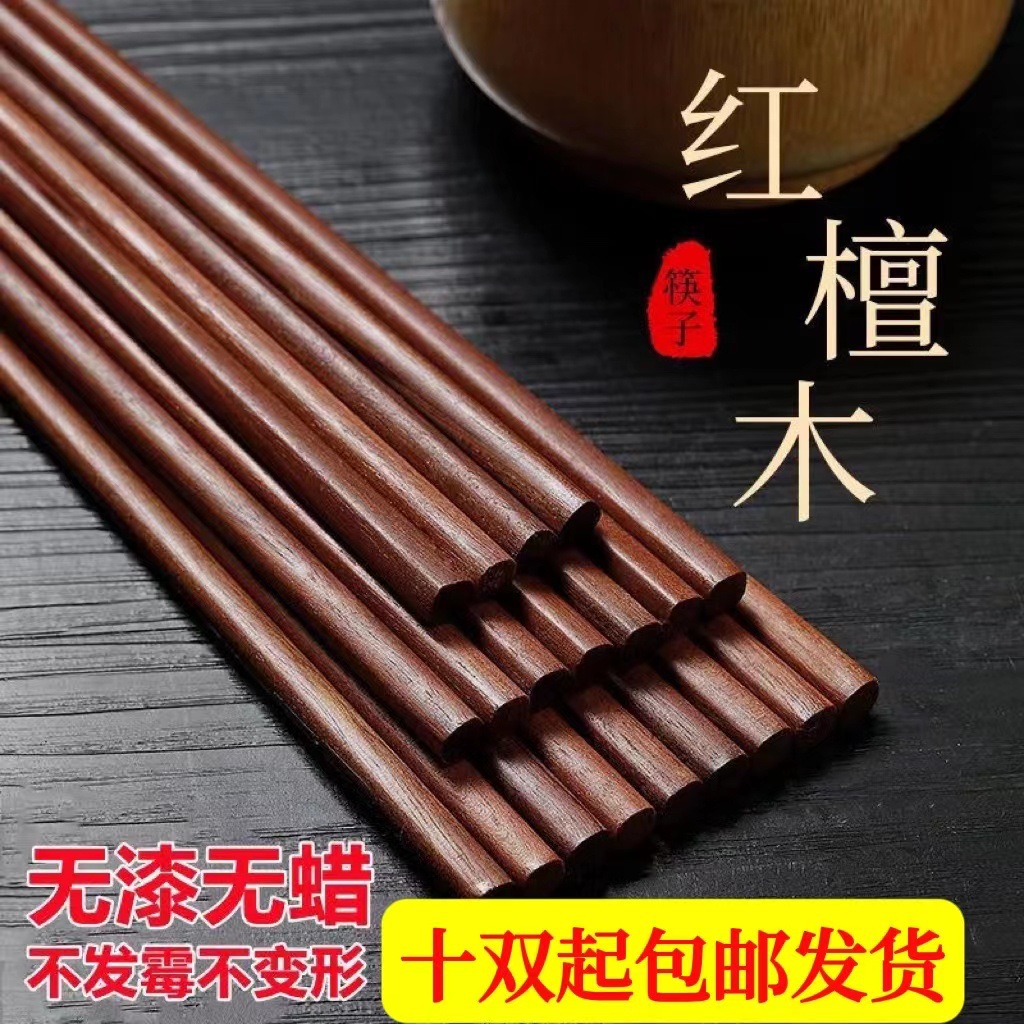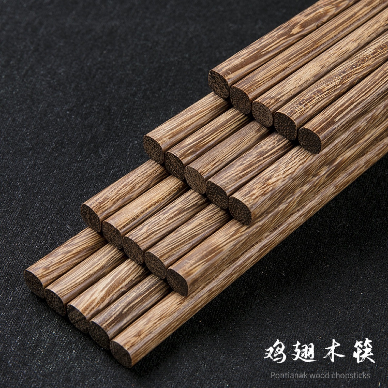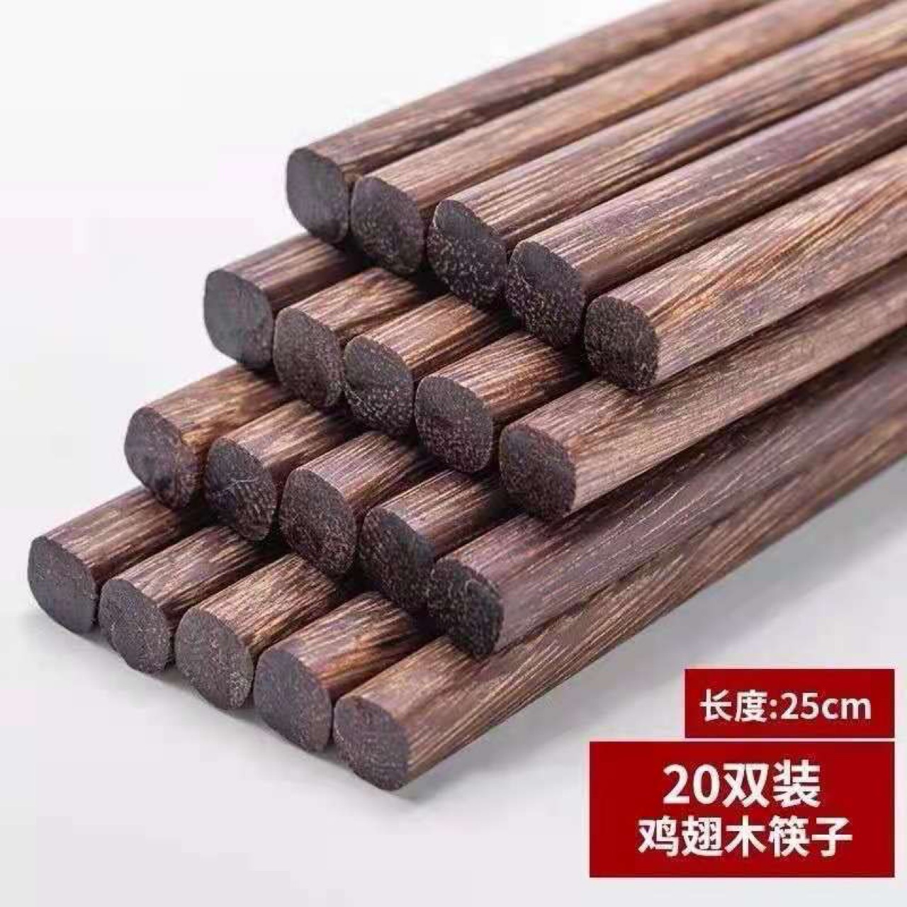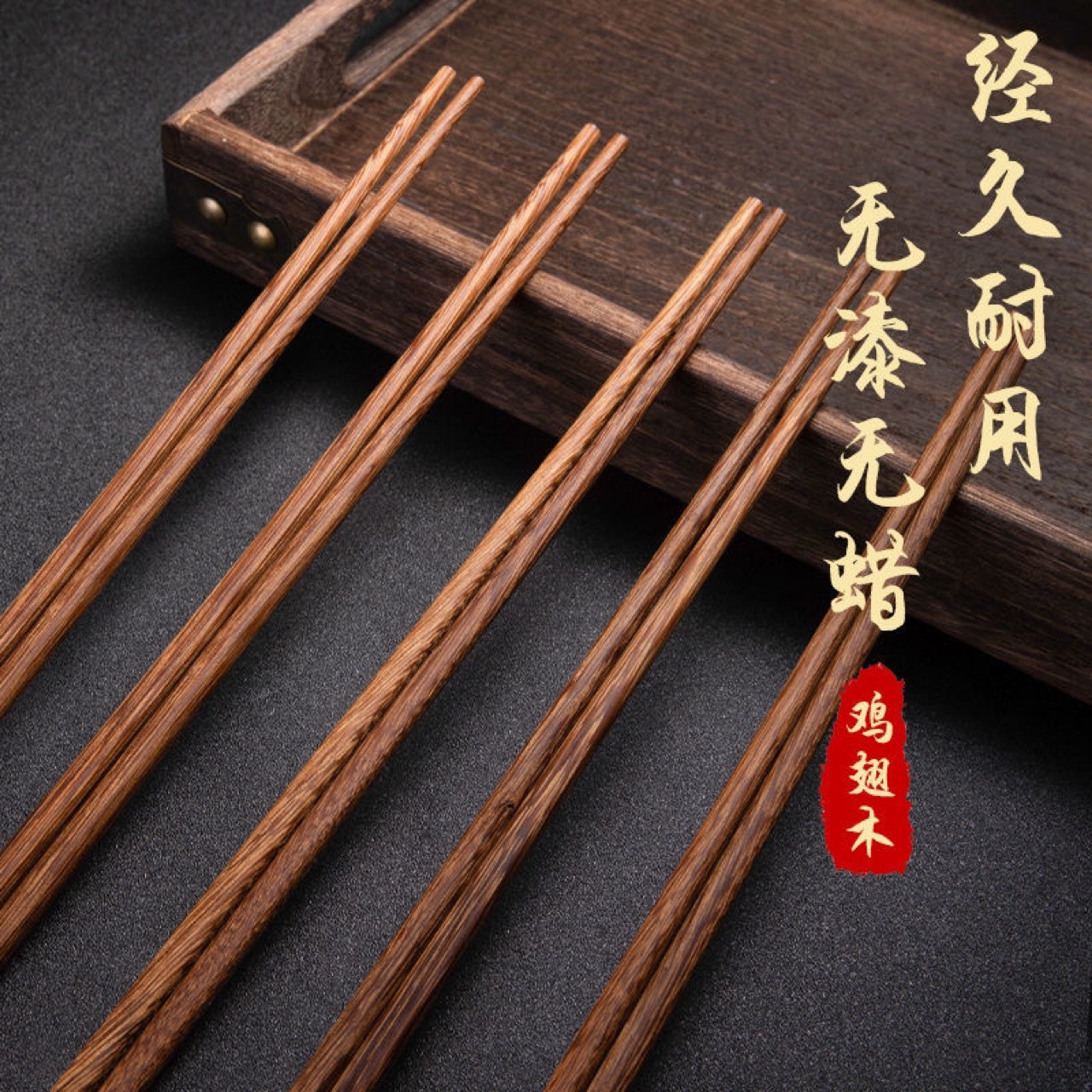 家用鸡翅木筷子无漆无蜡家用实木筷家庭防霉防滑筷子不发霉新款