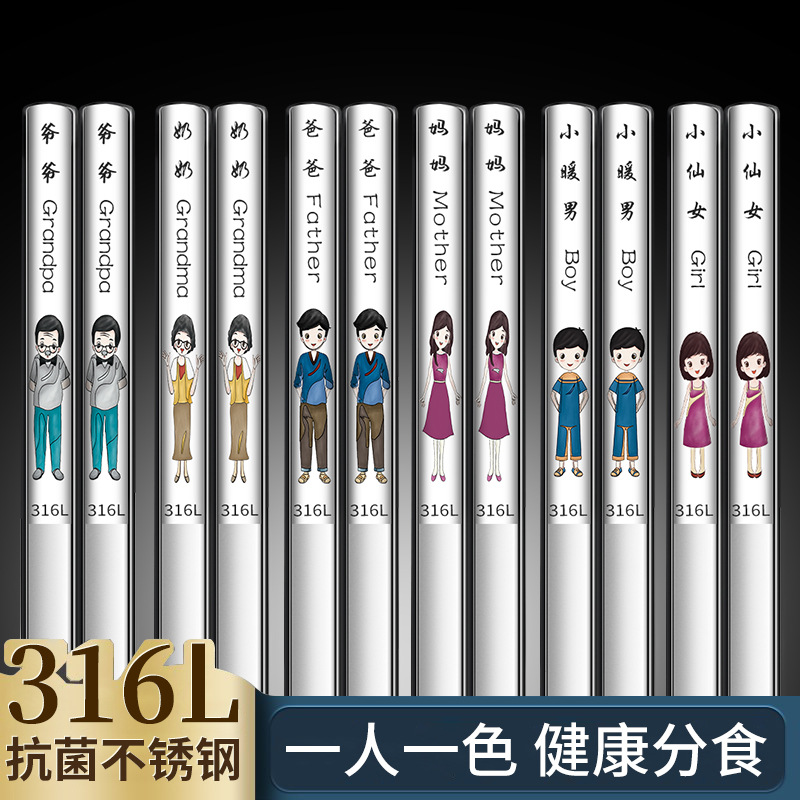 新款316不锈钢筷子家用亲子一人一筷家庭儿童高档防霉耐高温筷子