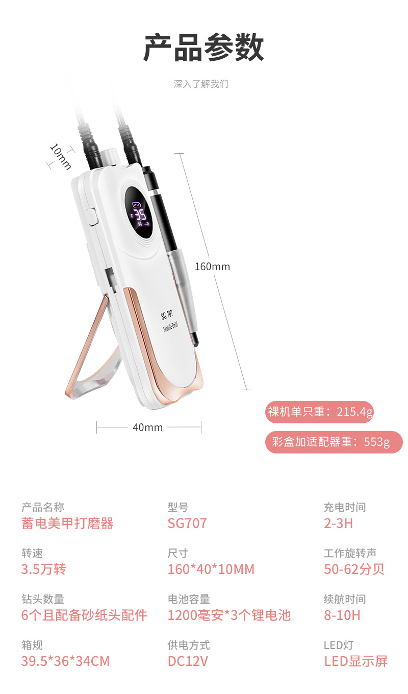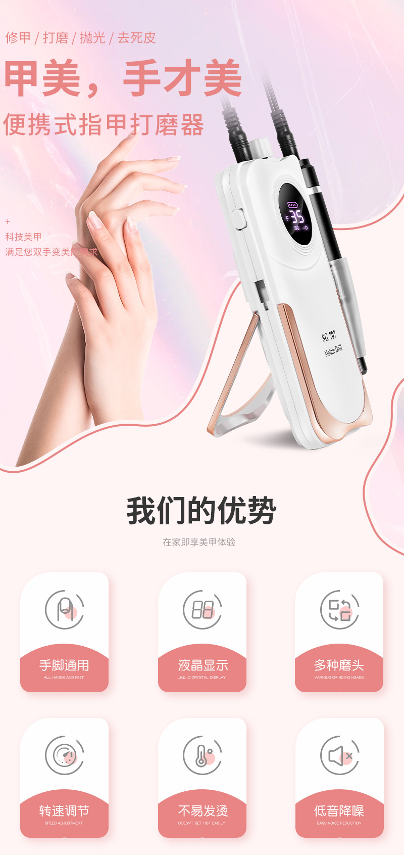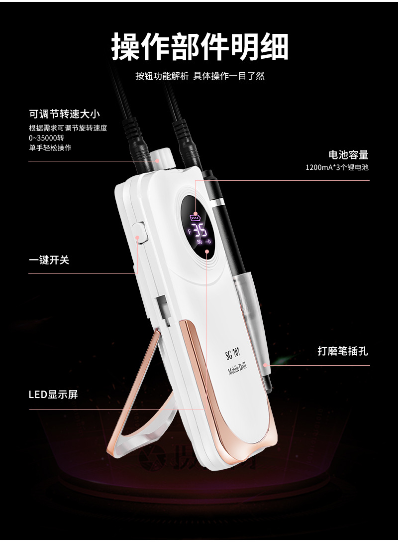充电式美甲打磨机 35000转便携式美甲打磨机 笔式磨甲器