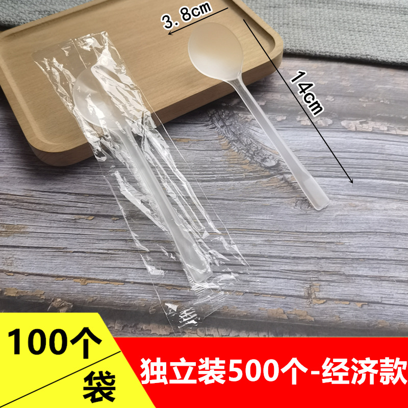 一次性塑料甜品勺子 水果捞西瓜金龟烧仙草汤勺冰粉500个单独包装