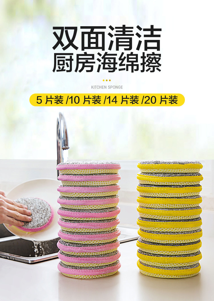 双面洗碗海绵檫厨房刷锅碗魔力擦家用不沾油钢丝球抹布百洁布