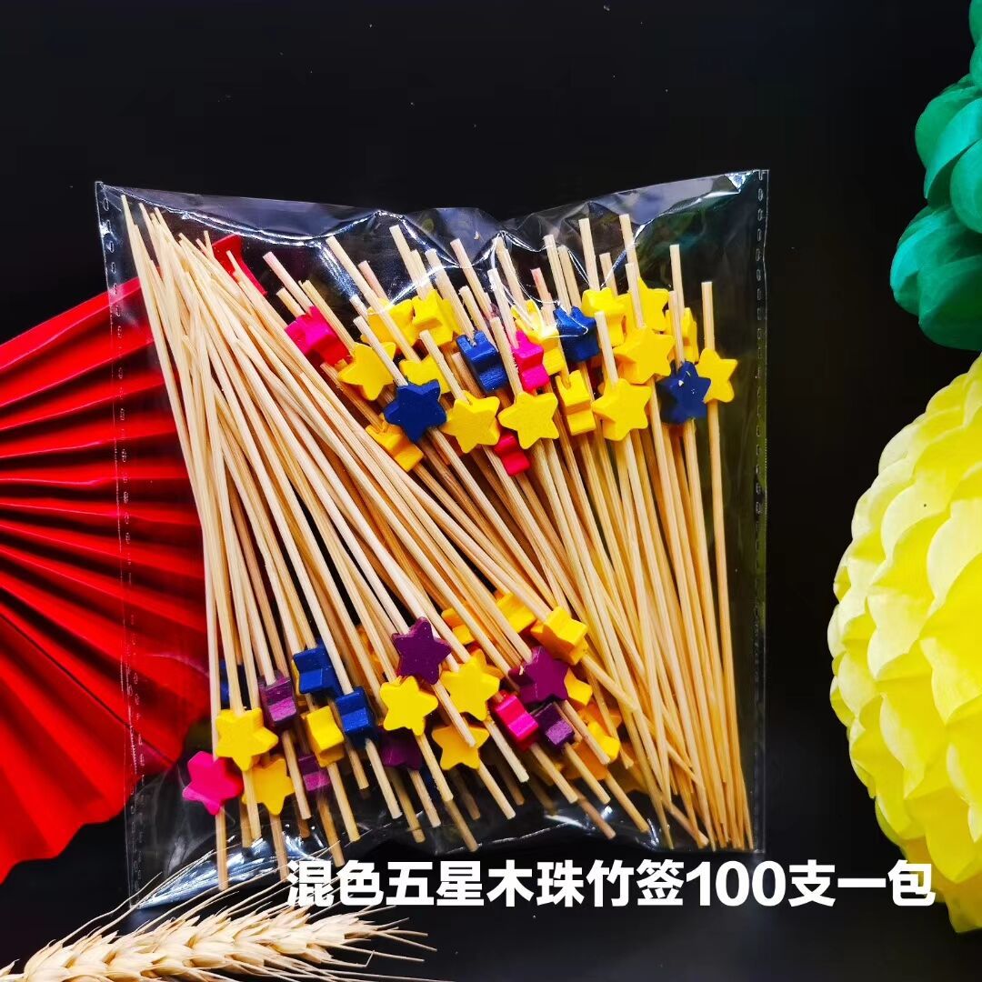水果签双珠签剪刀签鸡尾酒一次性网红签竹签彩色创意家商用串串签