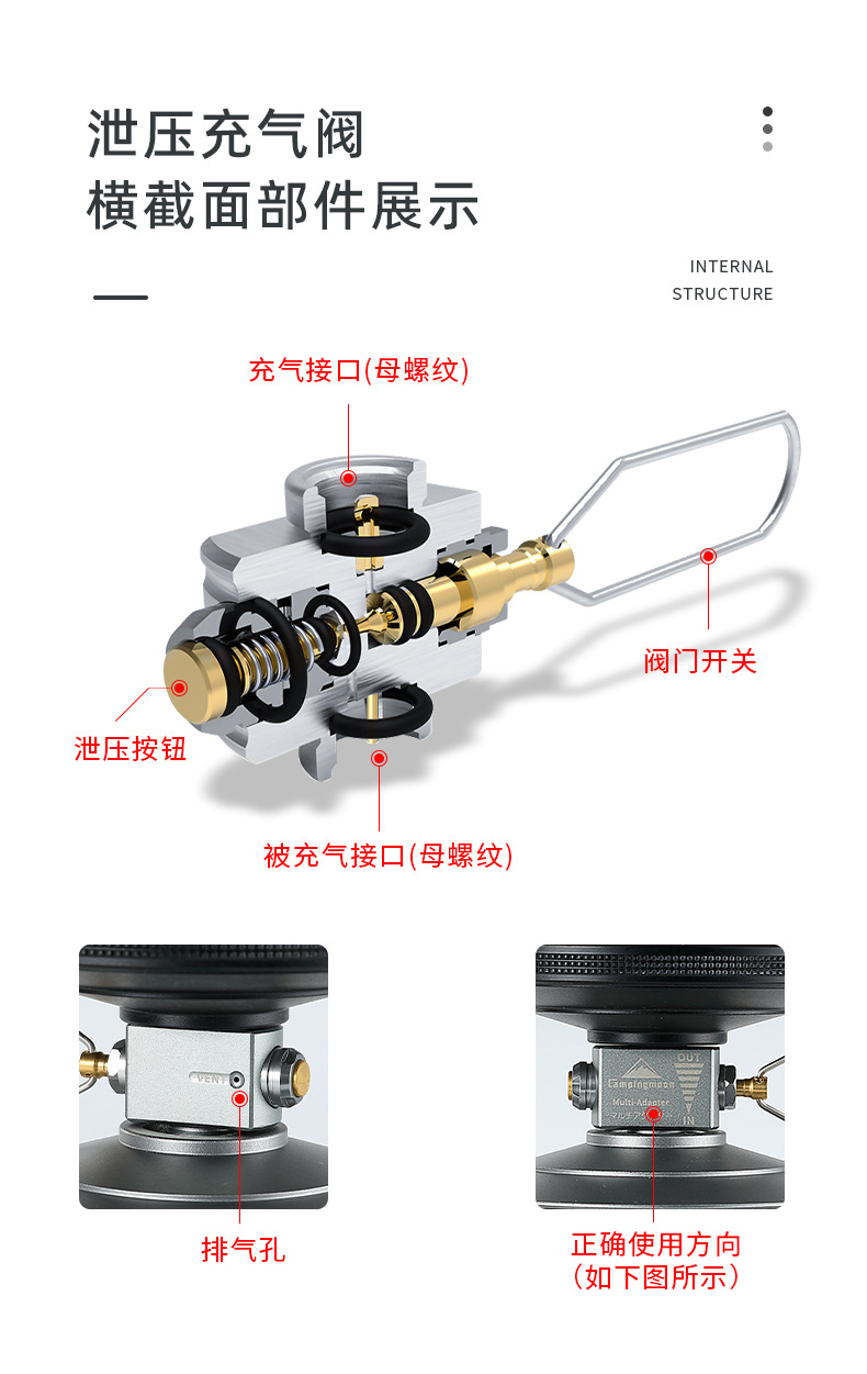 柯曼Z15野营配件气罐充气阀 泄压充气阀 户外工具 气罐泄压