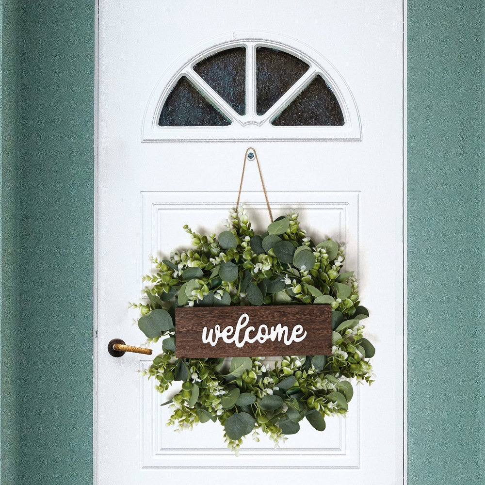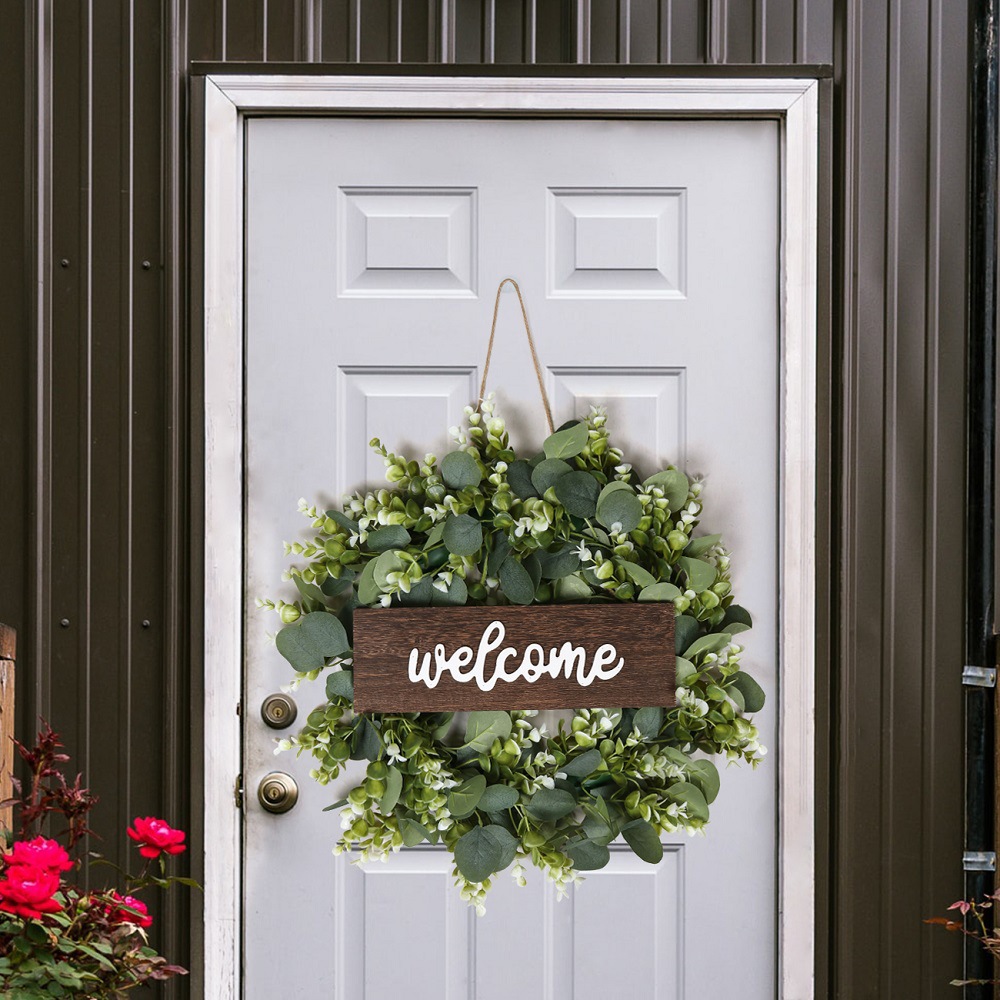 跨境简约门饰diy花环 桉树叶尤加利假花圣诞仿真花环感恩节装饰品