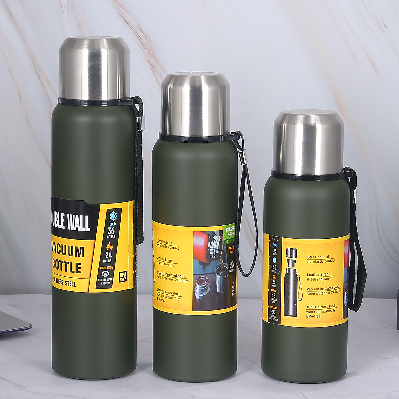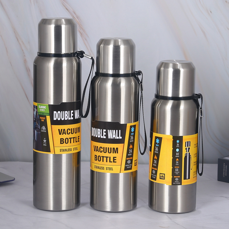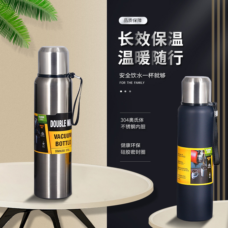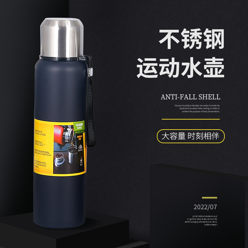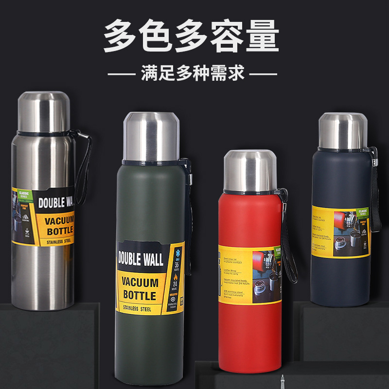 创意大容量不锈钢真空保温杯便携吊绳户外全钢运动水壶车载旅行壶