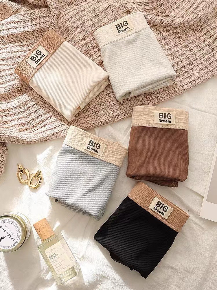 简约少女拼色细螺纹舒适亲肤柔软三角裤中腰弹力提臀少女三角内裤