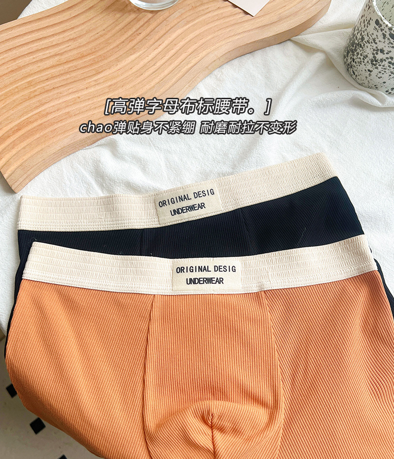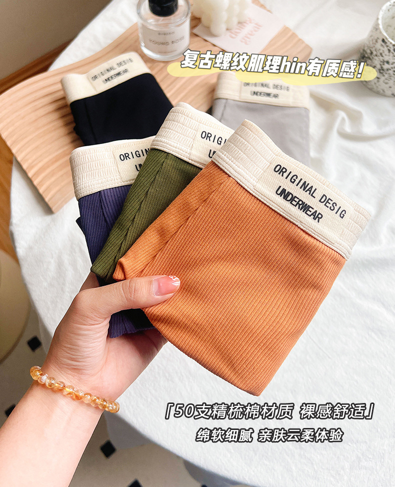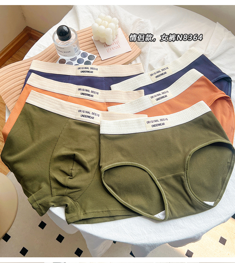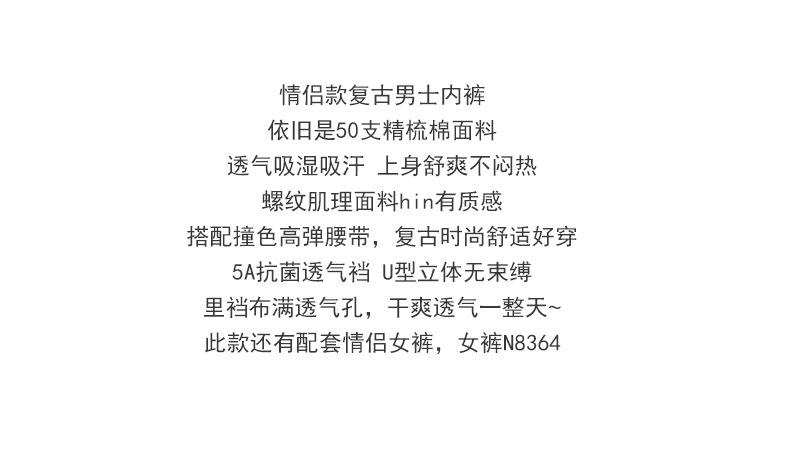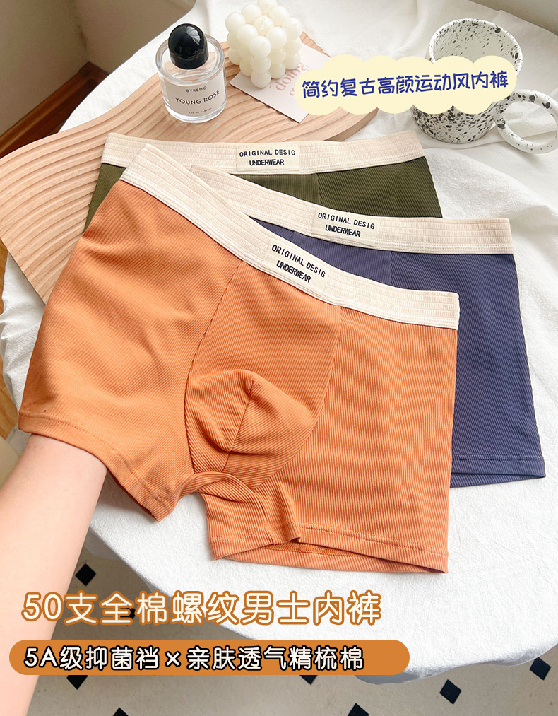 情侣款50支螺纹棉男士内裤复古运动风5A菌透气亲肤中腰三角裤女