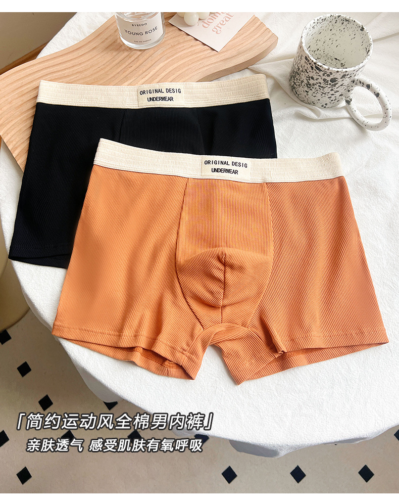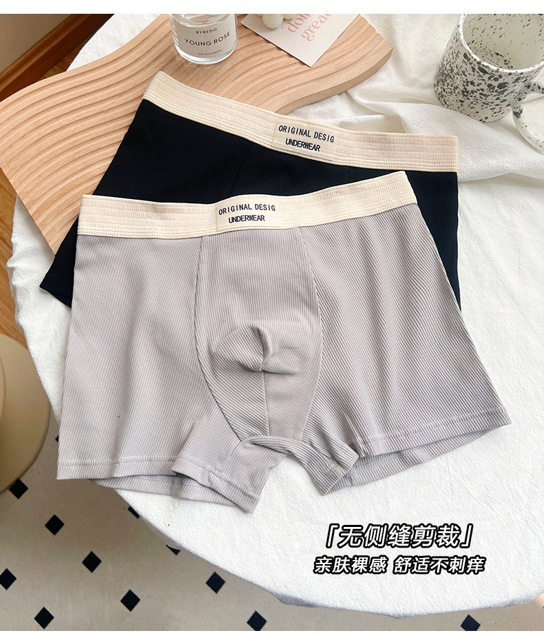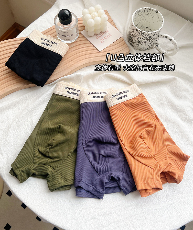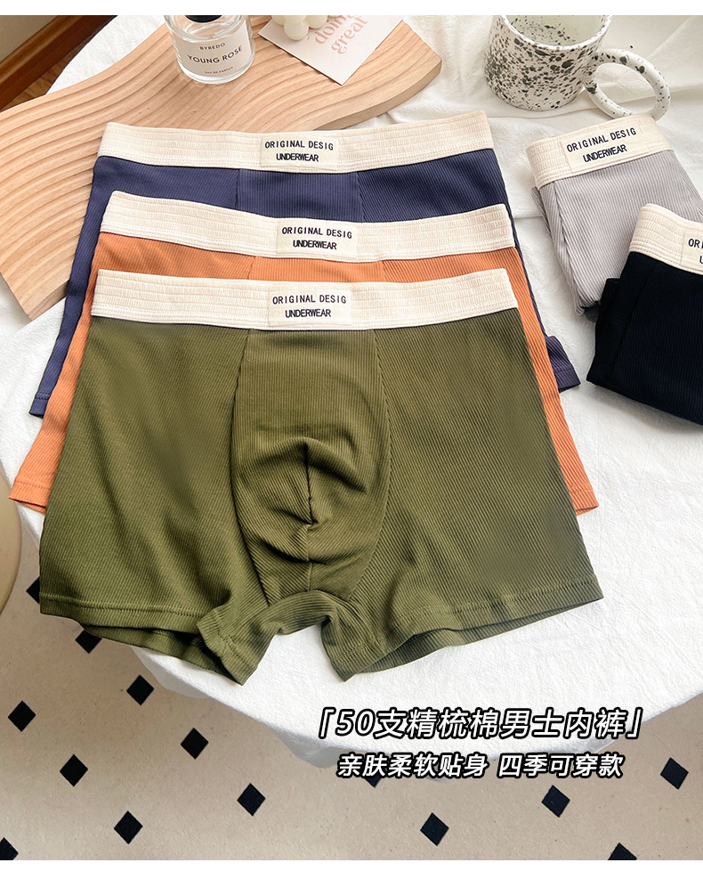 情侣款50支螺纹棉男士内裤复古运动风5A菌透气亲肤中腰三角裤女