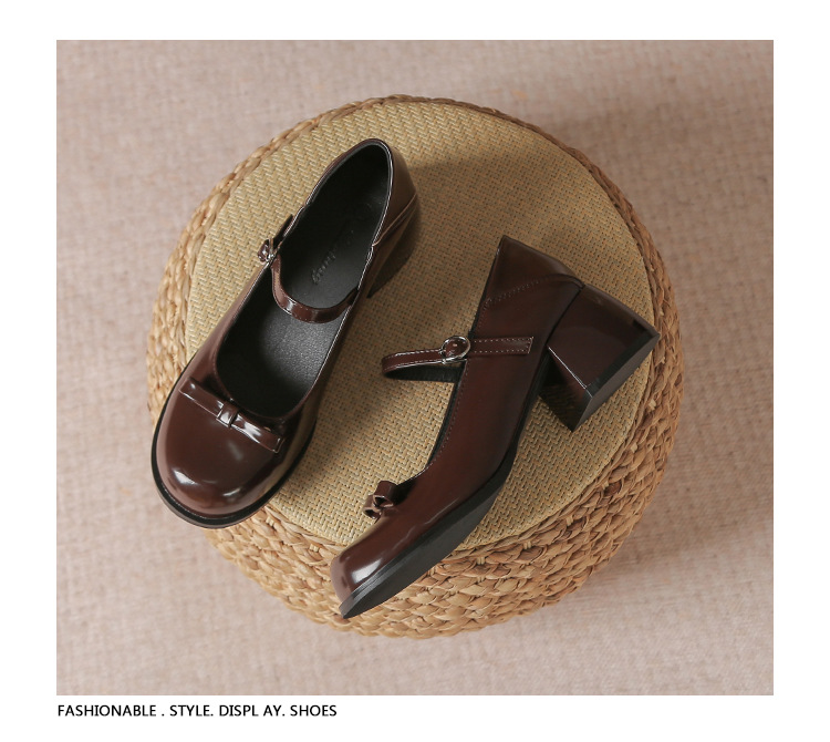 仙女高跟单鞋2023年新款百搭气质晚晚风圆头浅口粗跟玛丽珍鞋