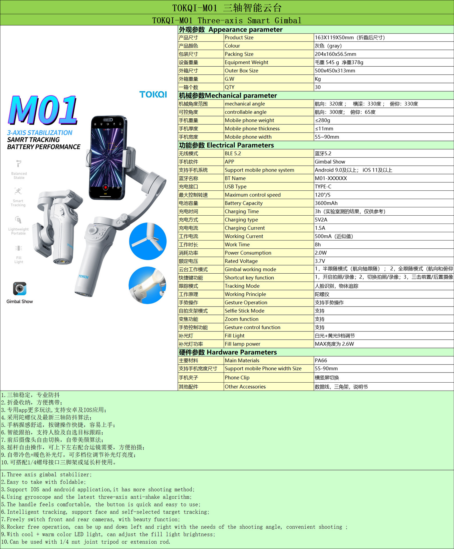 M01手持云台三轴手机稳定器防抖智能人脸跟拍摄影直播支架稳拍器