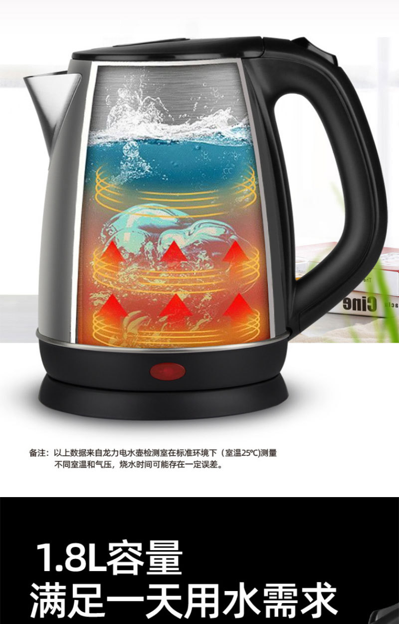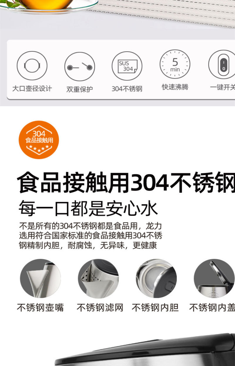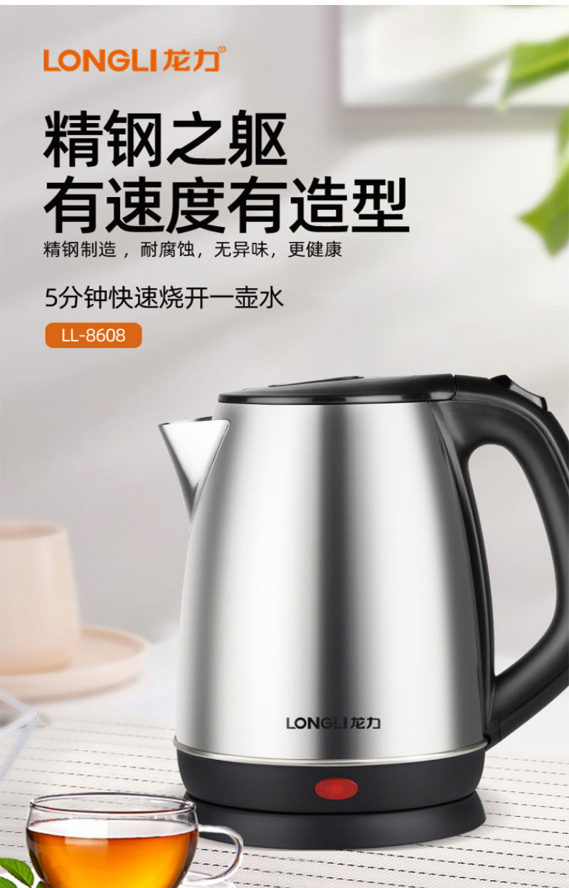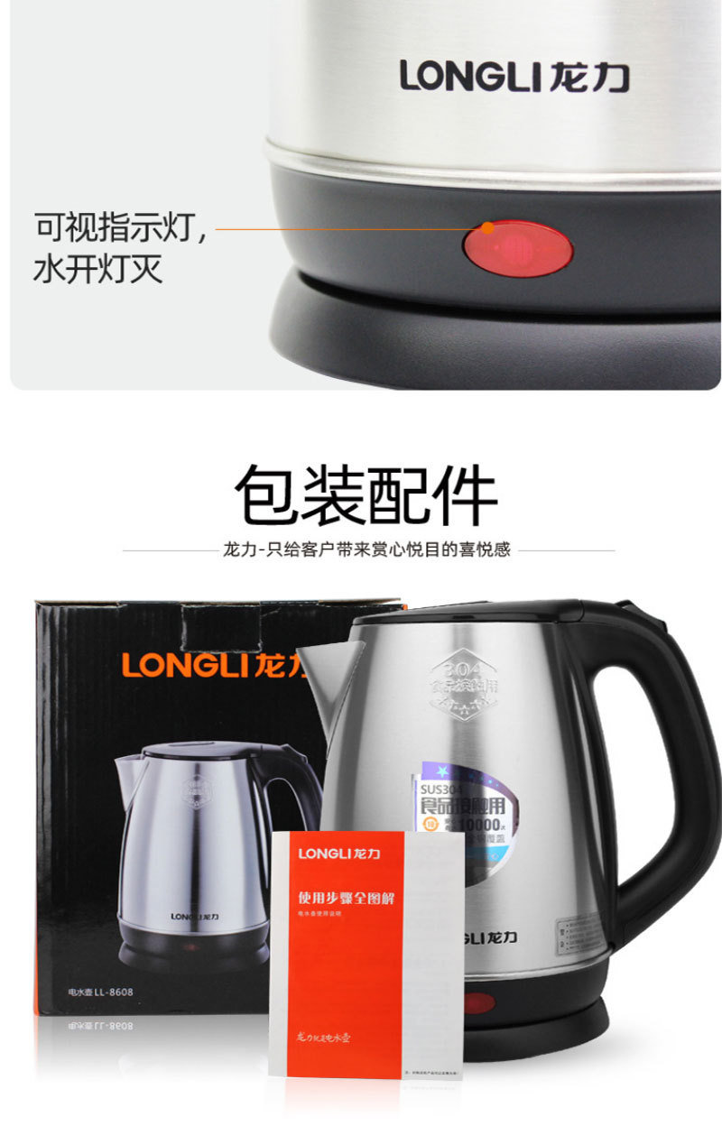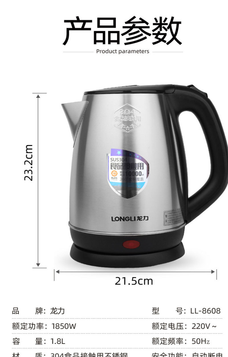 龙力电水壶LL-8608热 烧开食品接触用304不锈钢 1.8升电热电热水