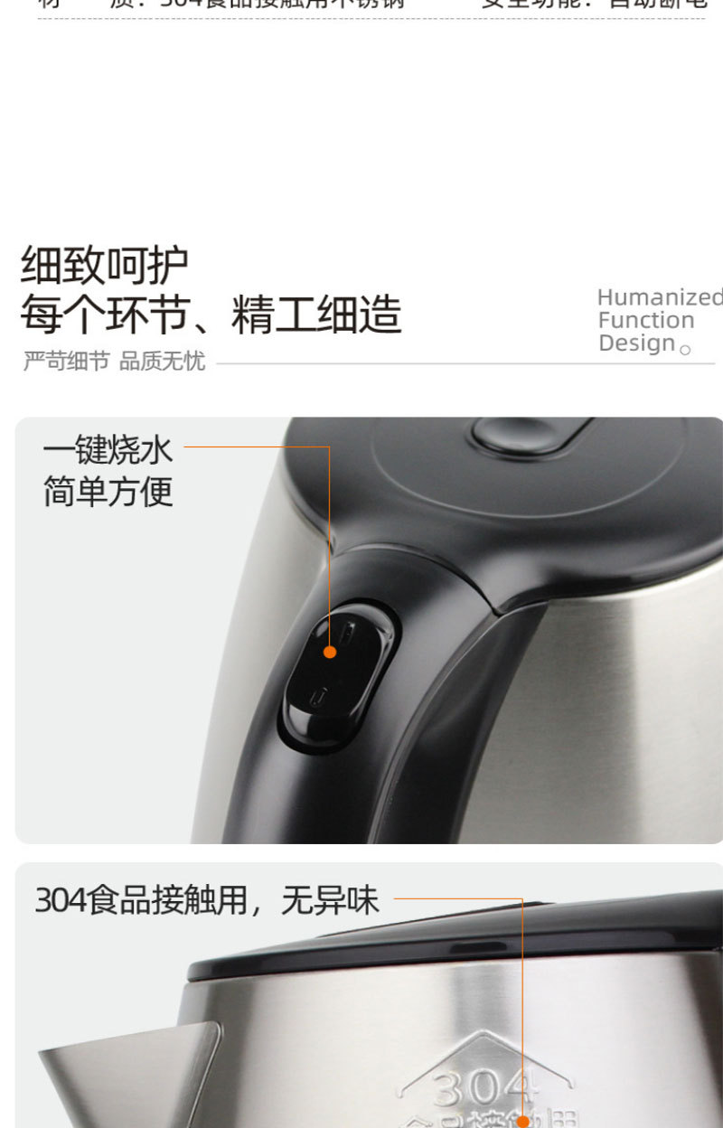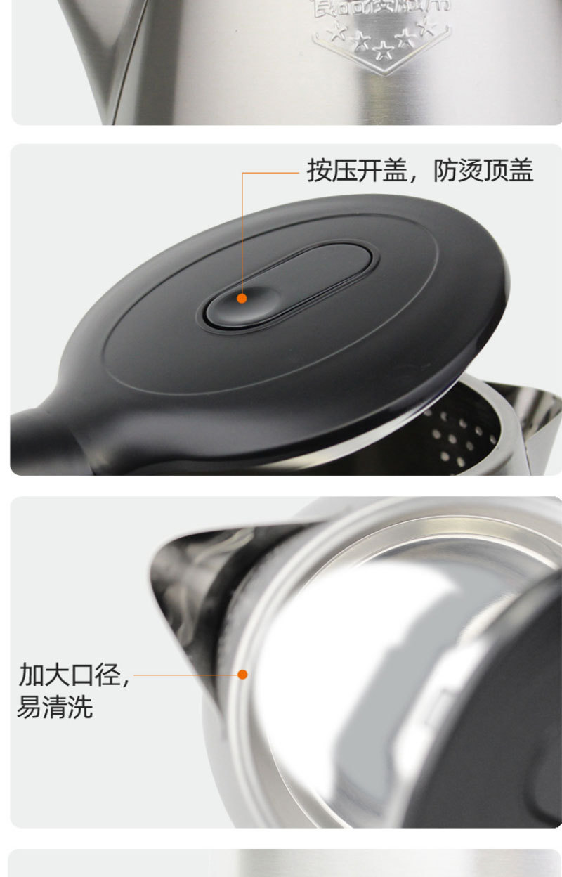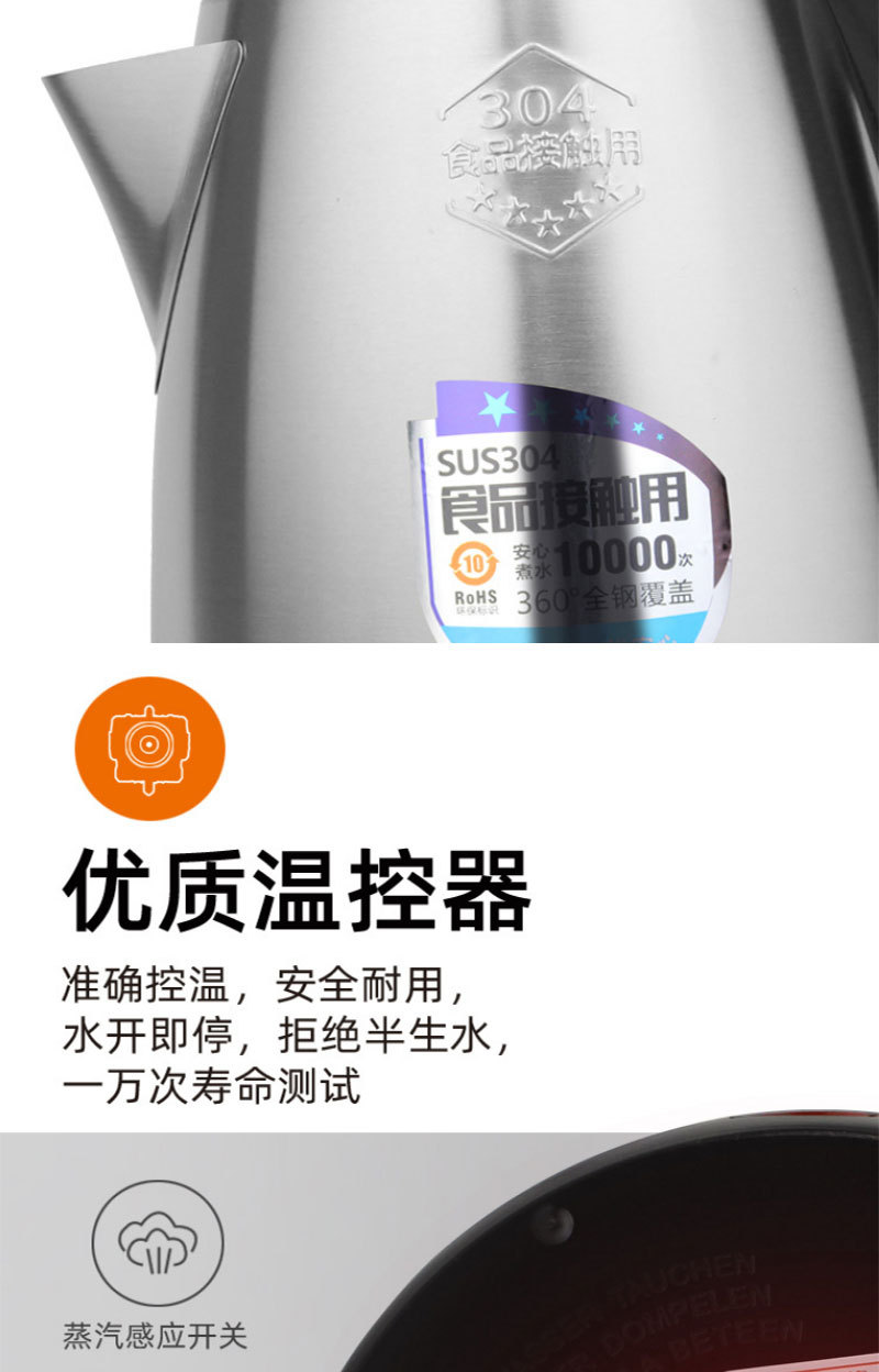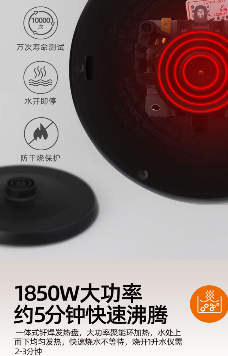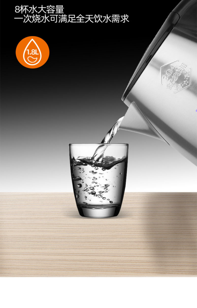 龙力电水壶LL-8608热 烧开食品接触用304不锈钢 1.8升电热电热水