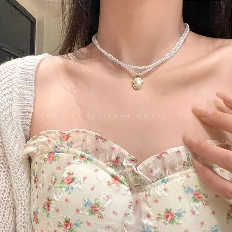 巴洛克珍珠项链女百搭高级感批发 小众设计感爱心锁骨链配饰新品