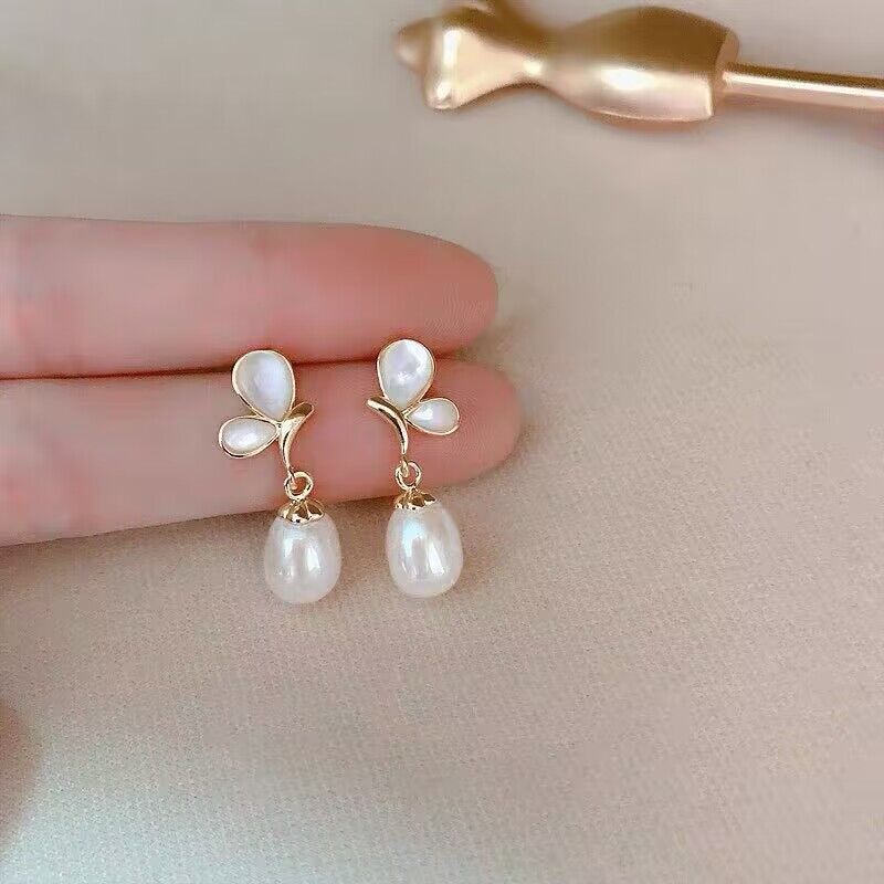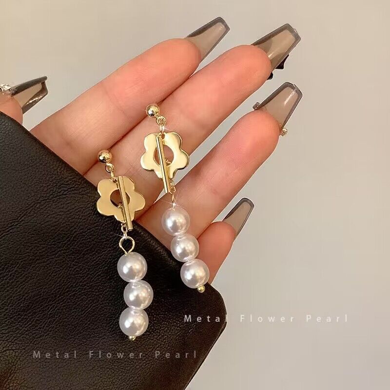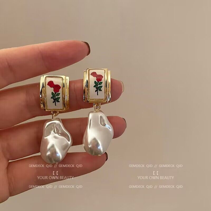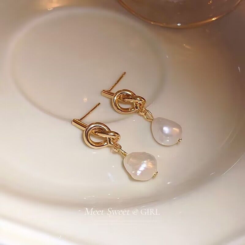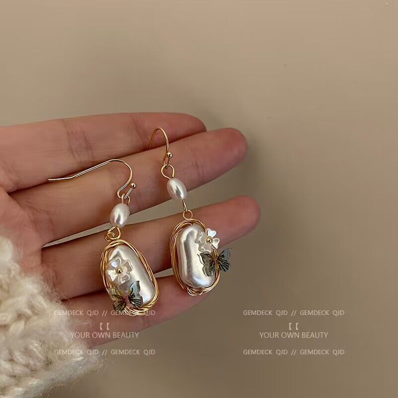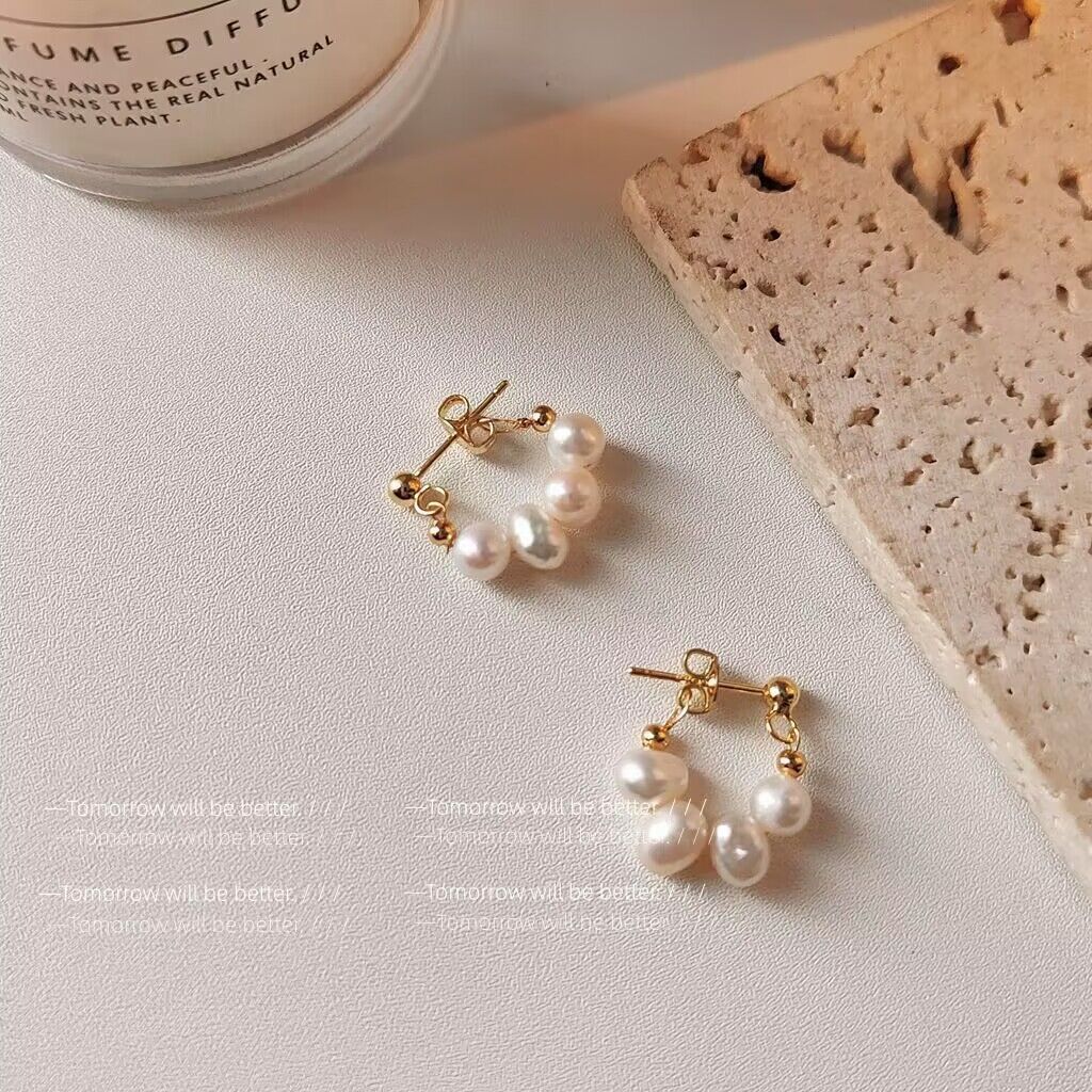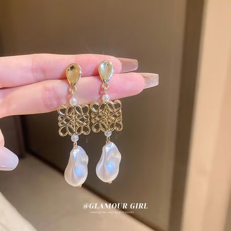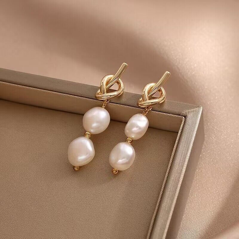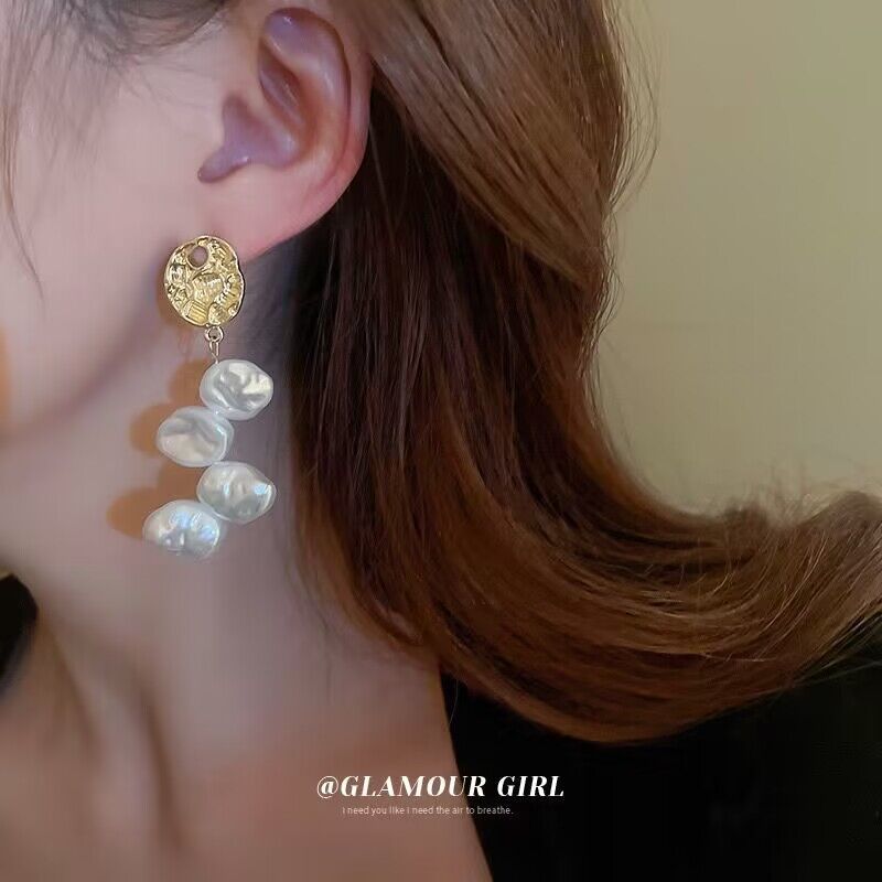 哑光耳钉女不对称复古巴洛克淡水珍珠耳环高级感批发925银针耳饰