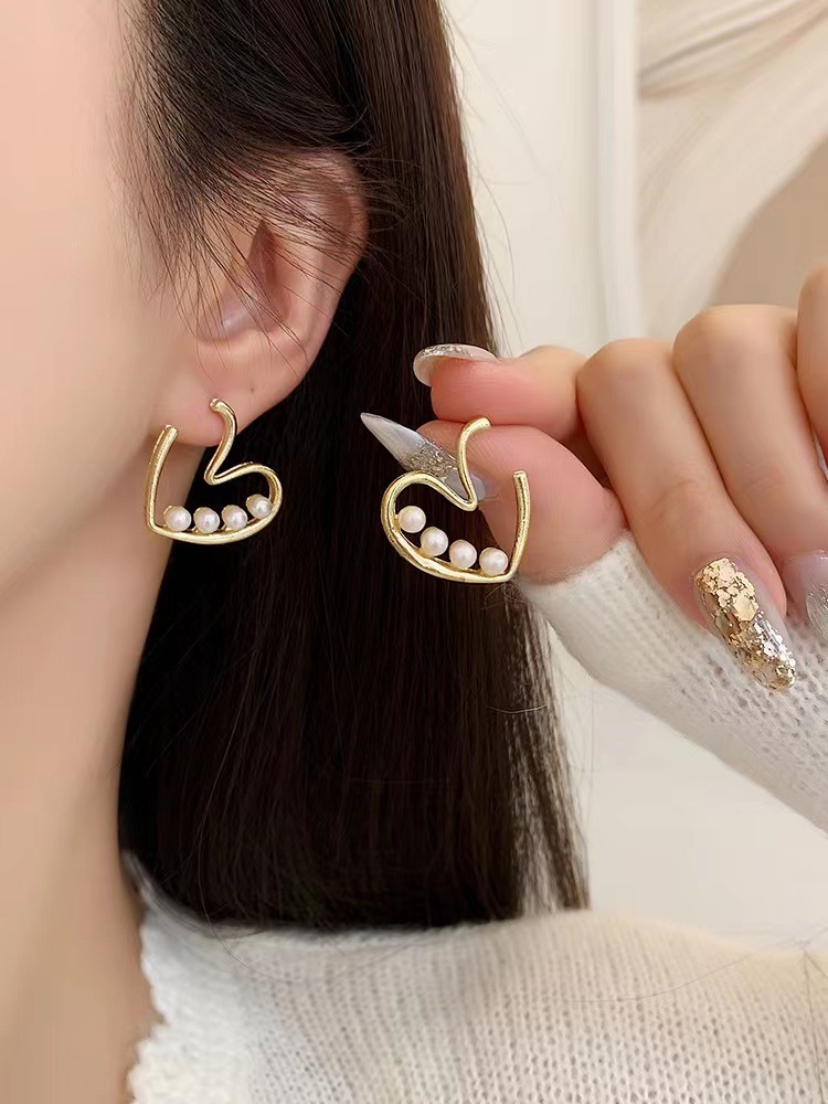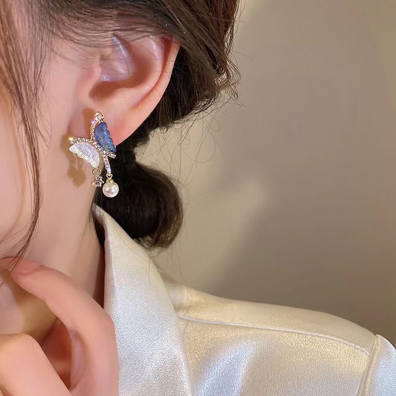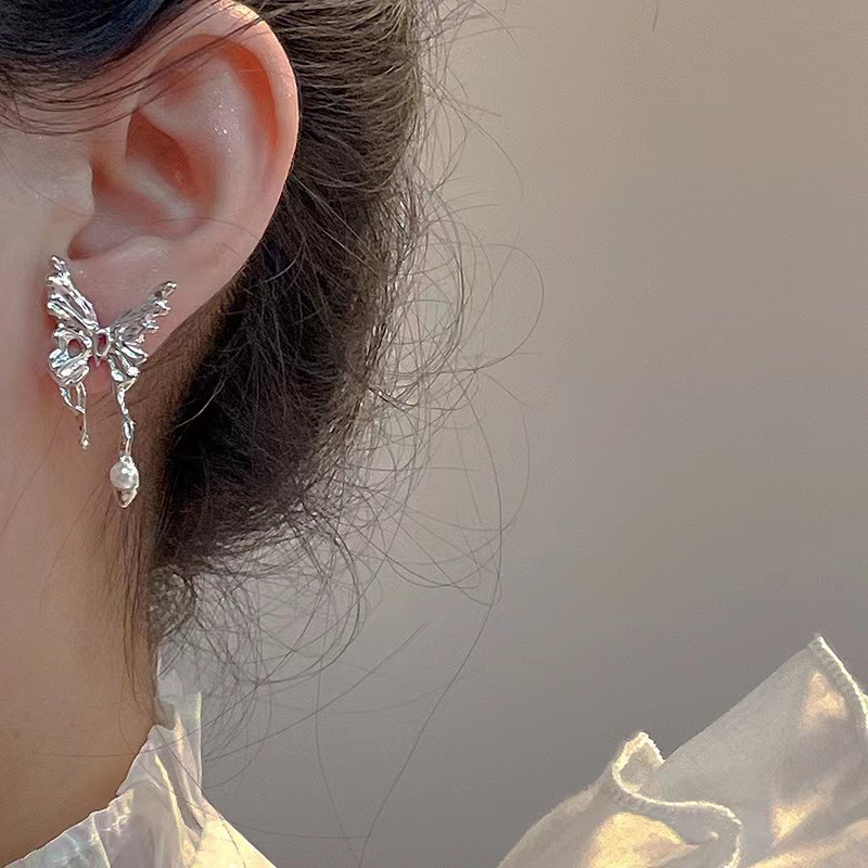 春季蝴蝶爱心耳环高级感女新款气质耳饰925银批发小清新耳钉简约