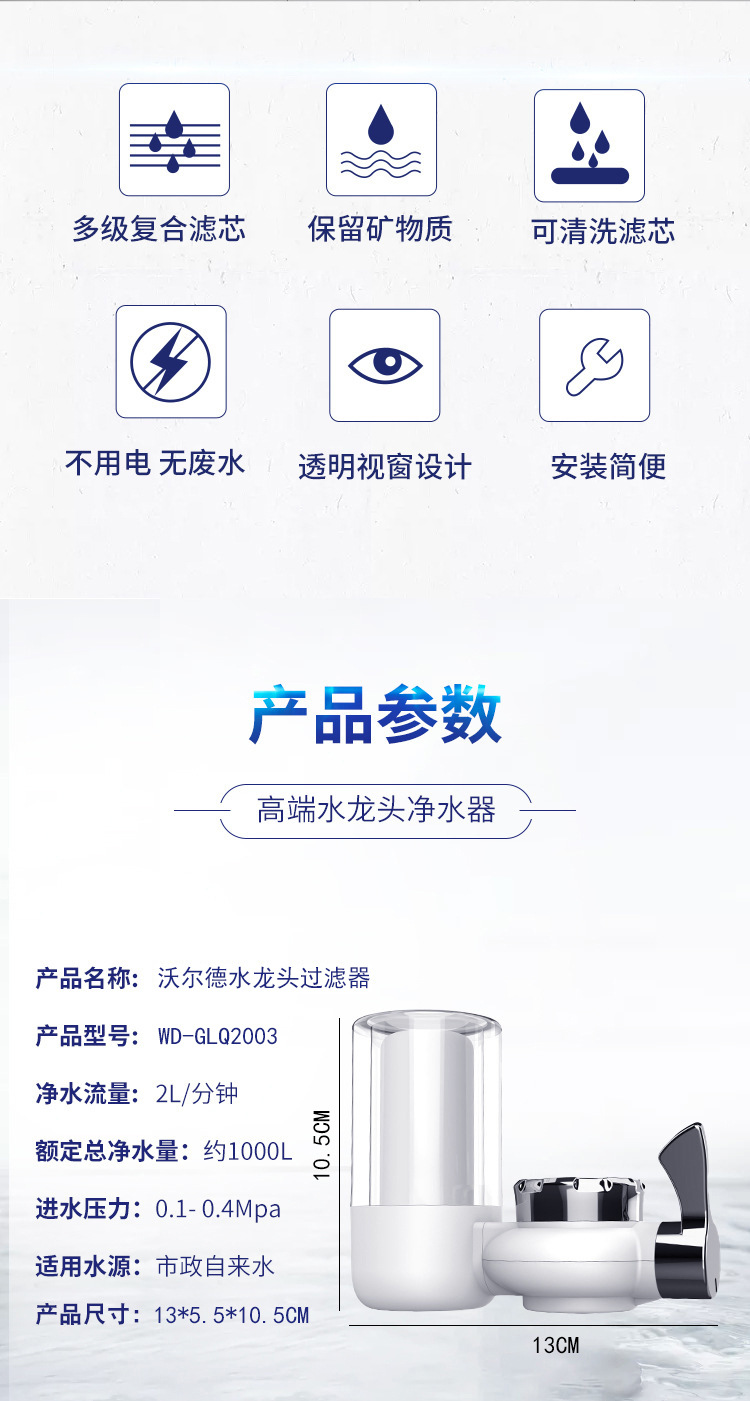 沃尔德水龙头过滤器家用双出水厨房通用自来水超滤前置净化器配件