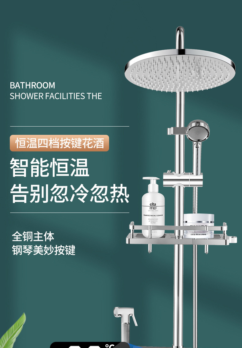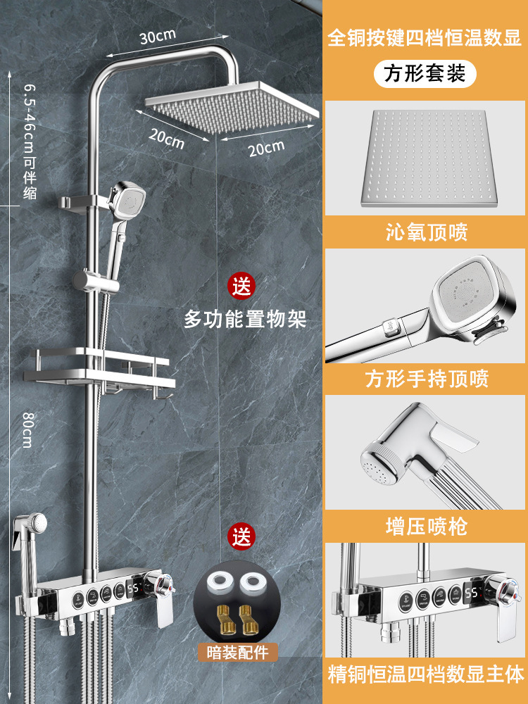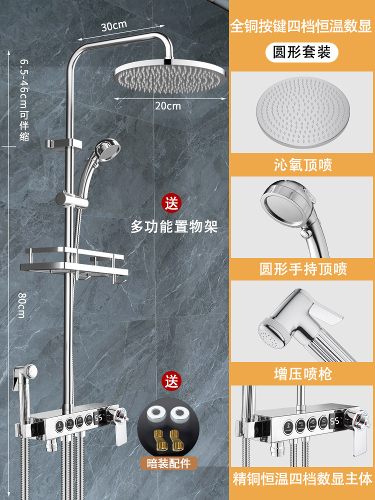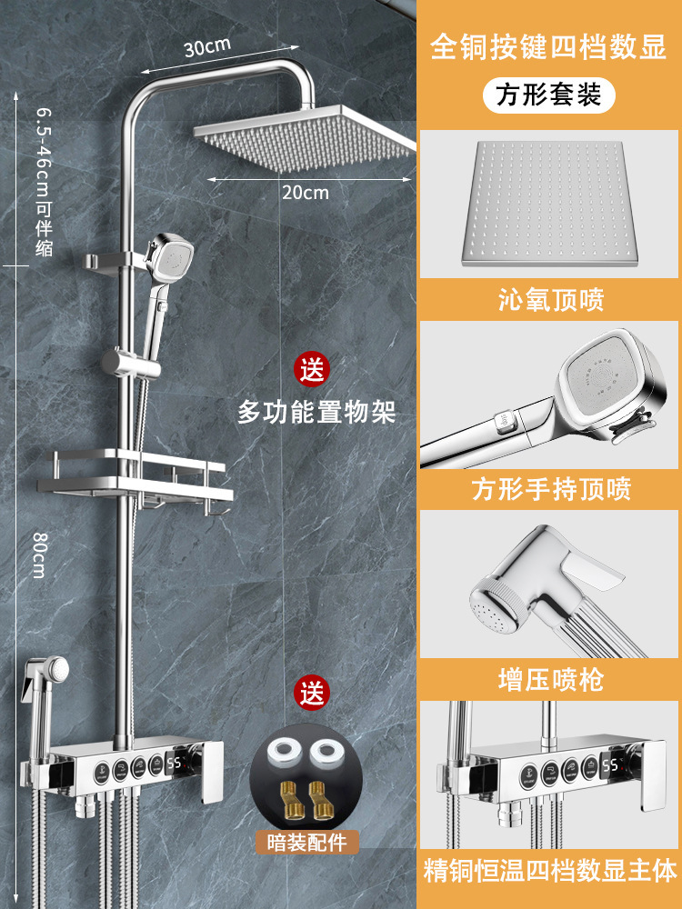 淋浴花洒套装家用全铜恒温数显卫生间浴室淋雨沐浴器洗澡增压喷头