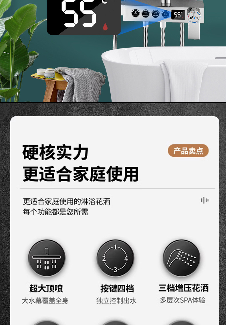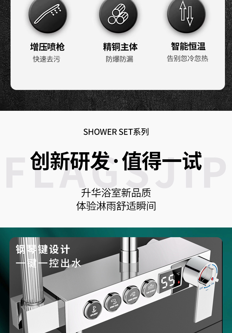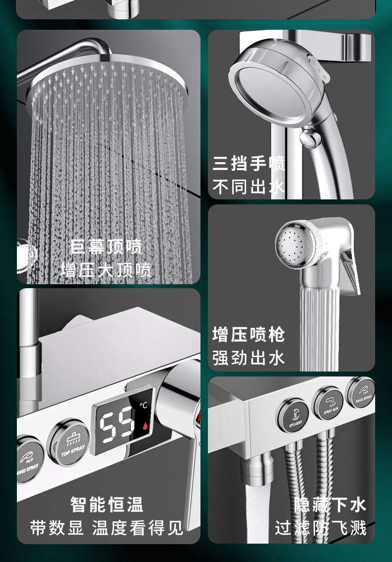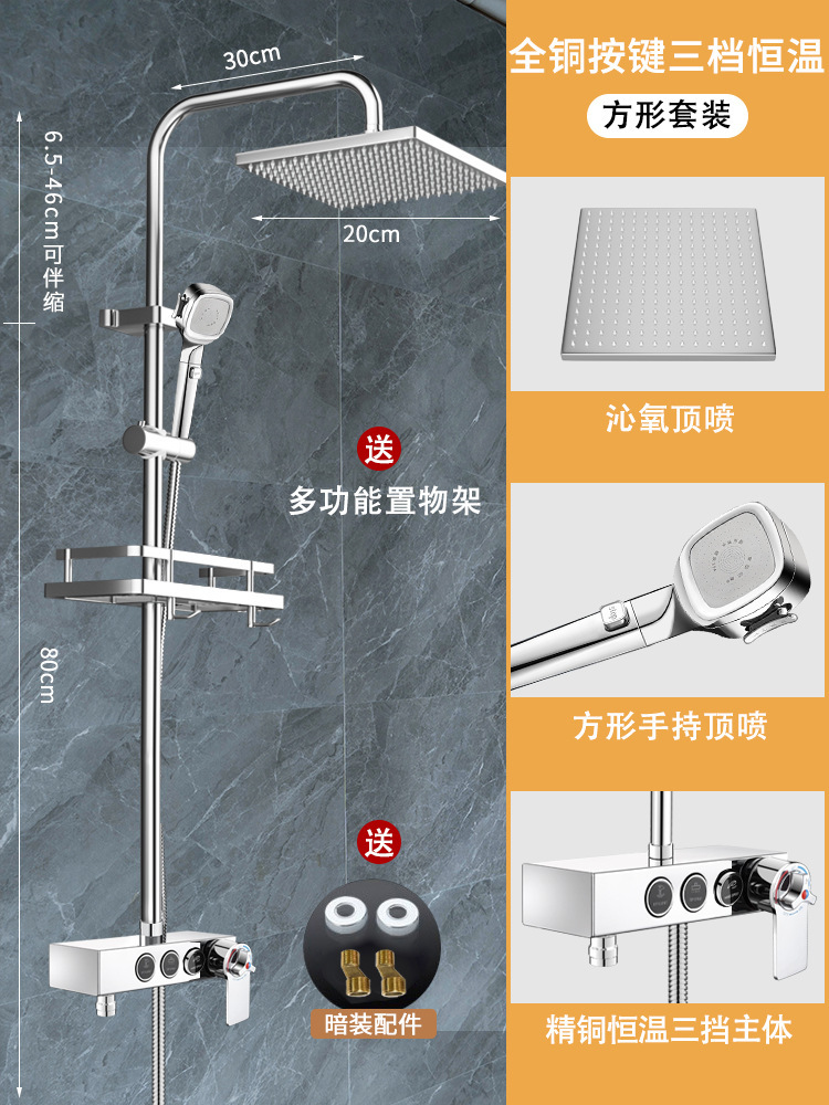 淋浴花洒套装家用全铜恒温数显卫生间浴室淋雨沐浴器洗澡增压喷头