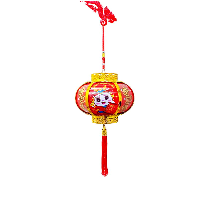 儿童手提古风汉服花灯新年双福水晶球大吉烫金七彩音乐宫灯笼批发