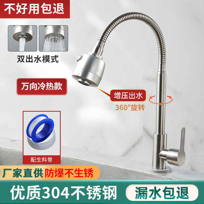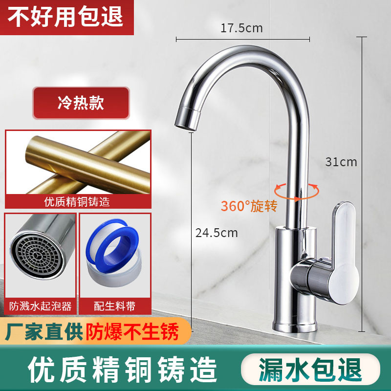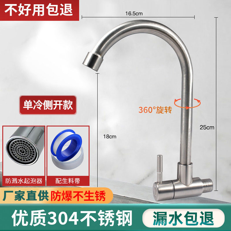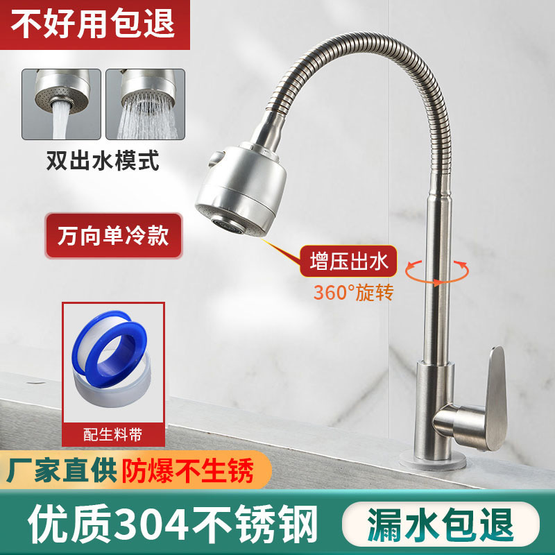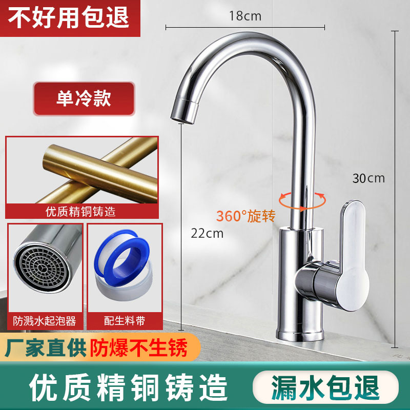 不锈钢厨房水龙头冷热水款家用防溅水二合一洗菜盆单冷洗手池全铜