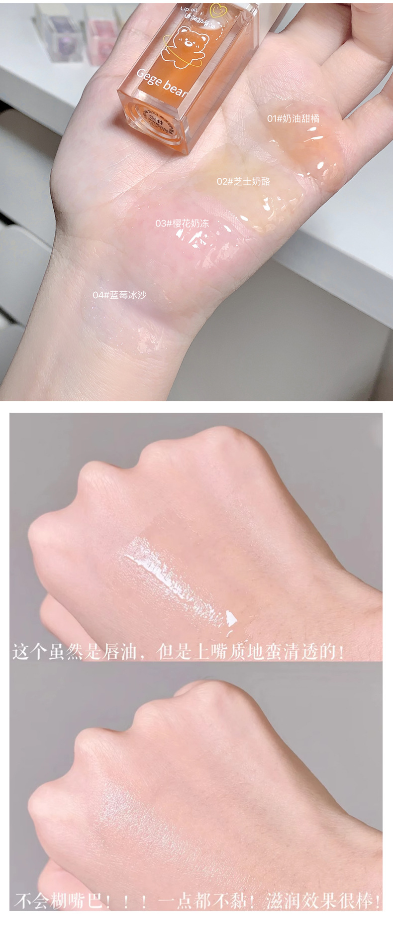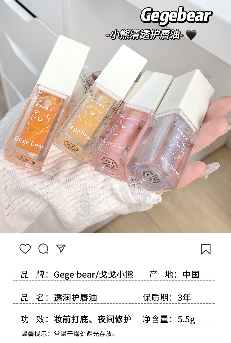 Gege bear小熊透润护唇油 水光镜面嘟嘟唇滋润保湿唇蜜彩妆化妆品