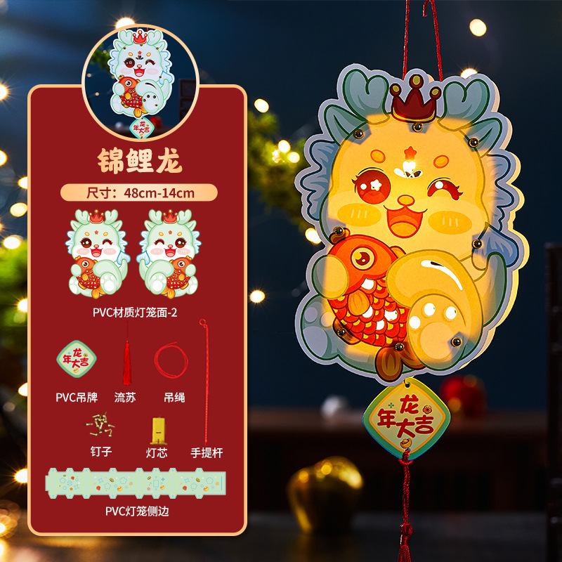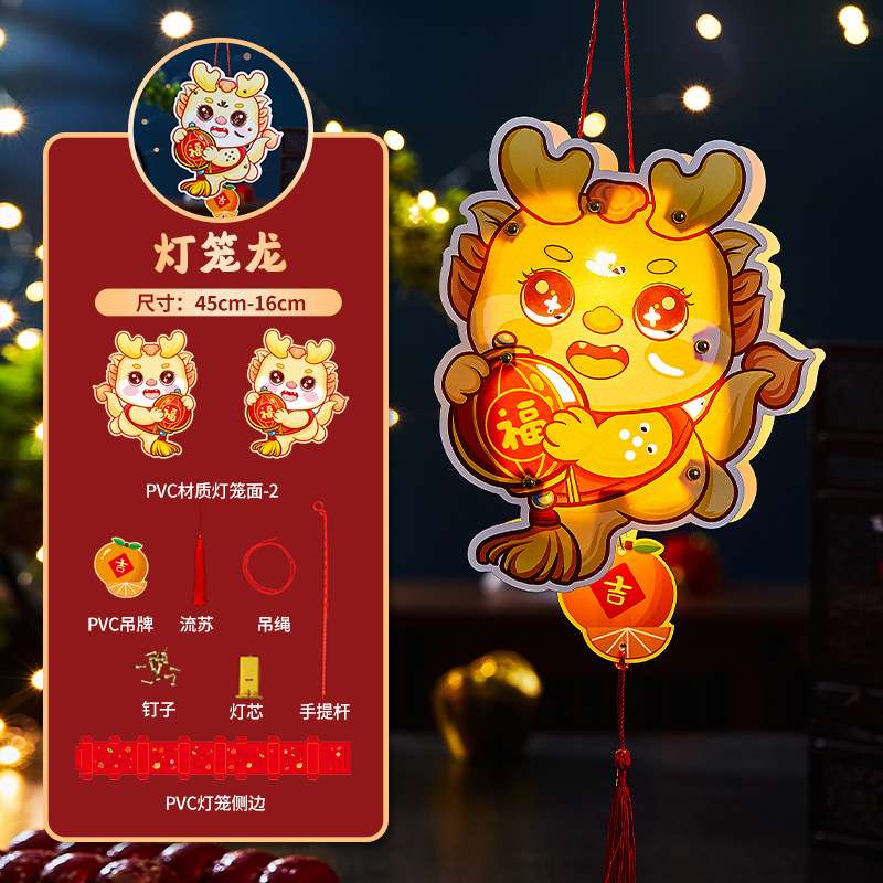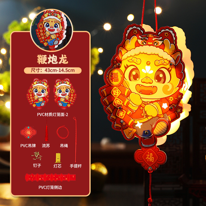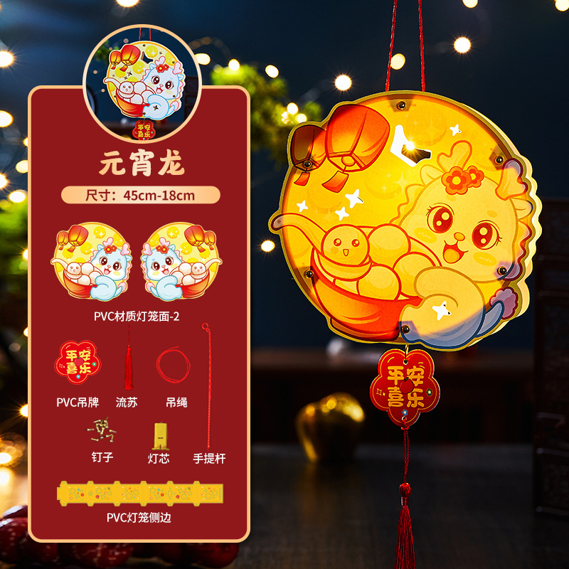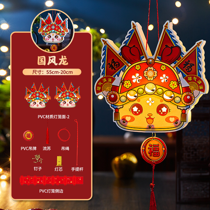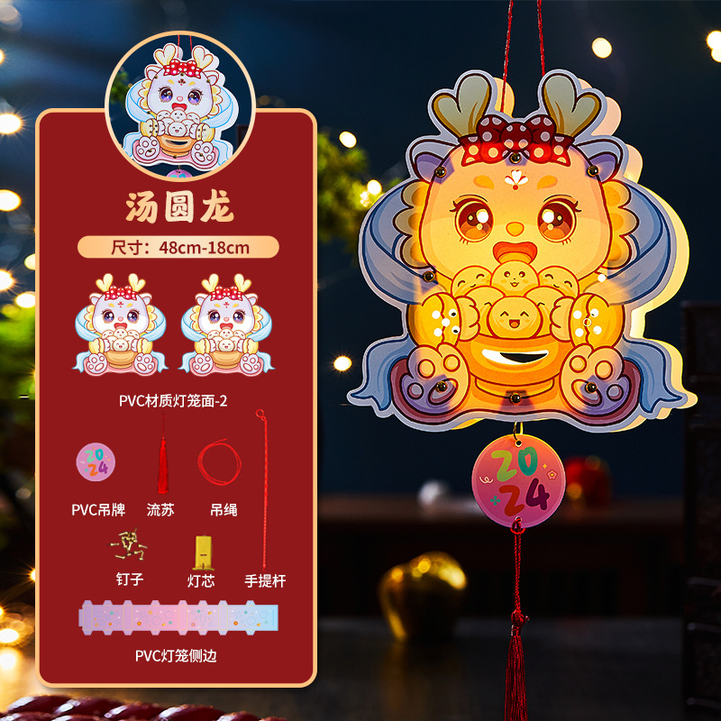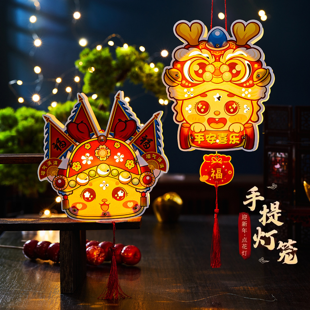 2024龙年新年手提灯笼儿童发光花灯元宵春节手工灯笼DIY材料国潮