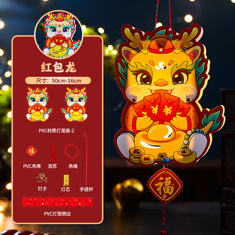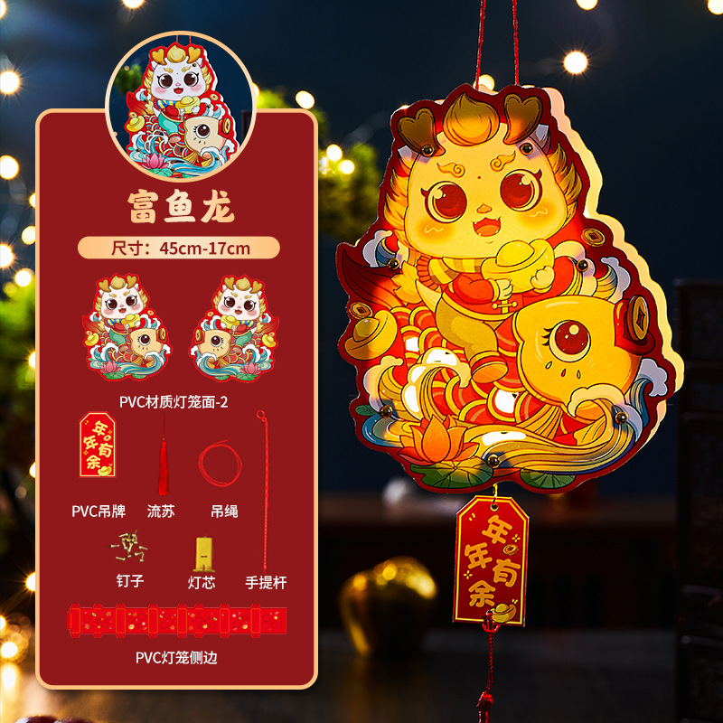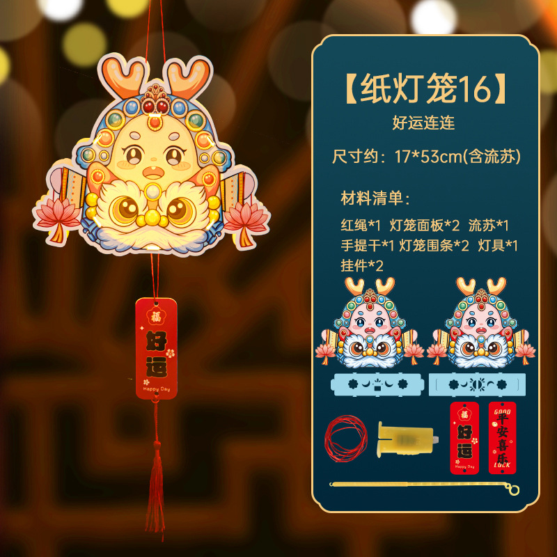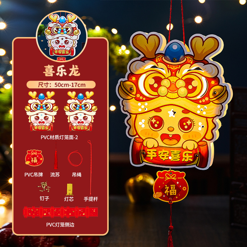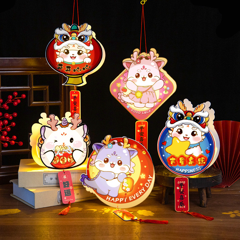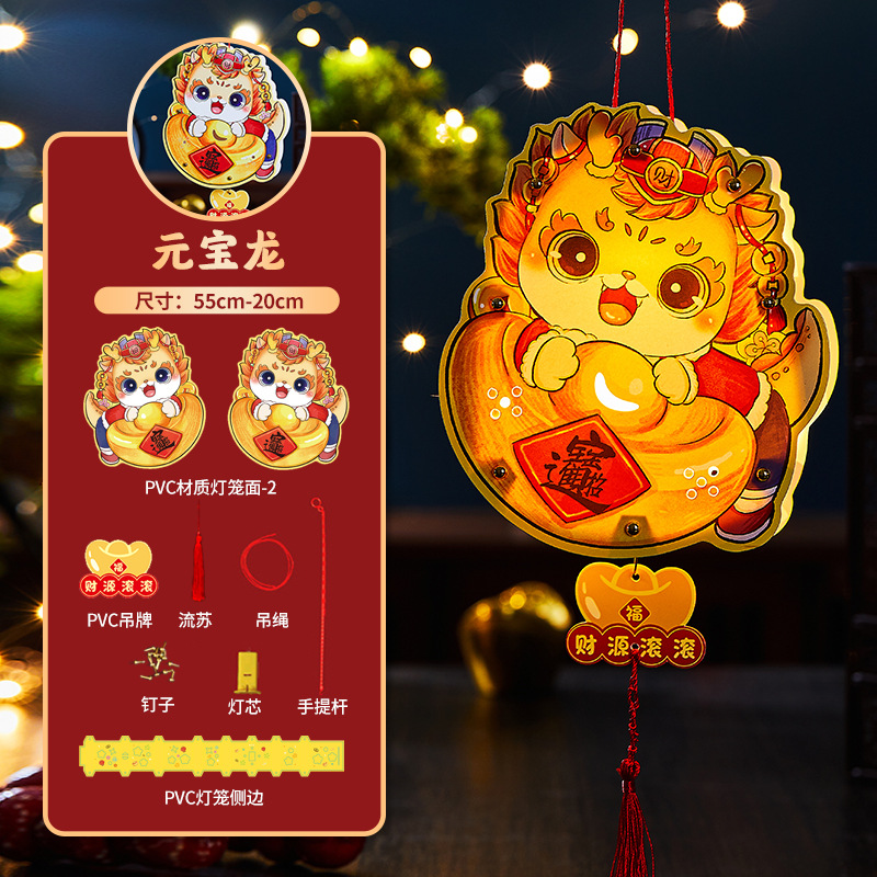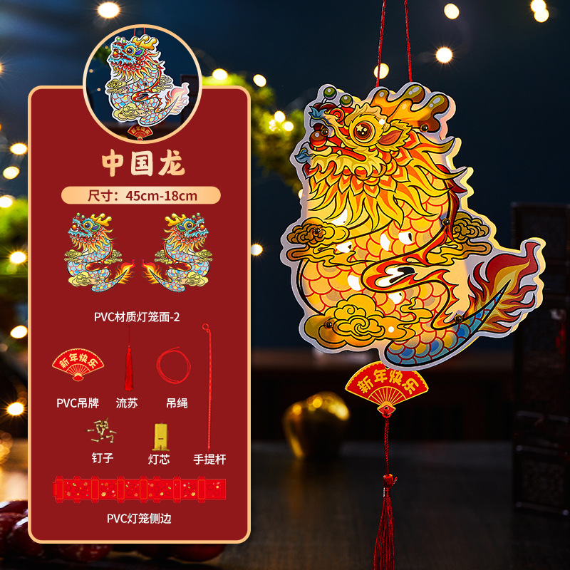 2024龙年新年手提灯笼儿童发光花灯元宵春节手工灯笼DIY材料国潮