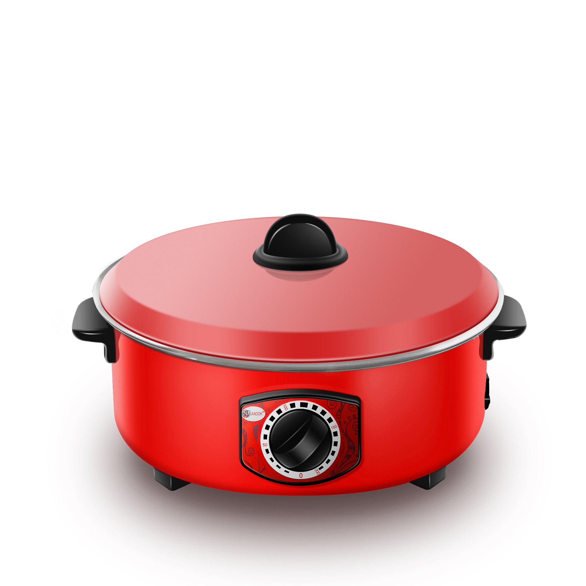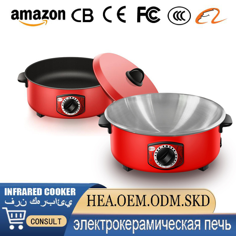 外贸出口电煮锅红色电炒锅蒸煮炖多功能电火锅东南亚缅甸泰国红锅