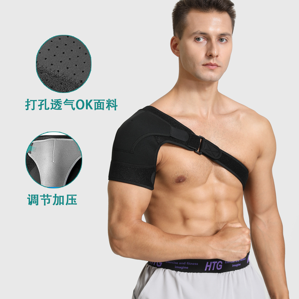 跨境运动黑色灰色SBR护肩可调节绑带护肩防止运动拉伤肩部保护绷