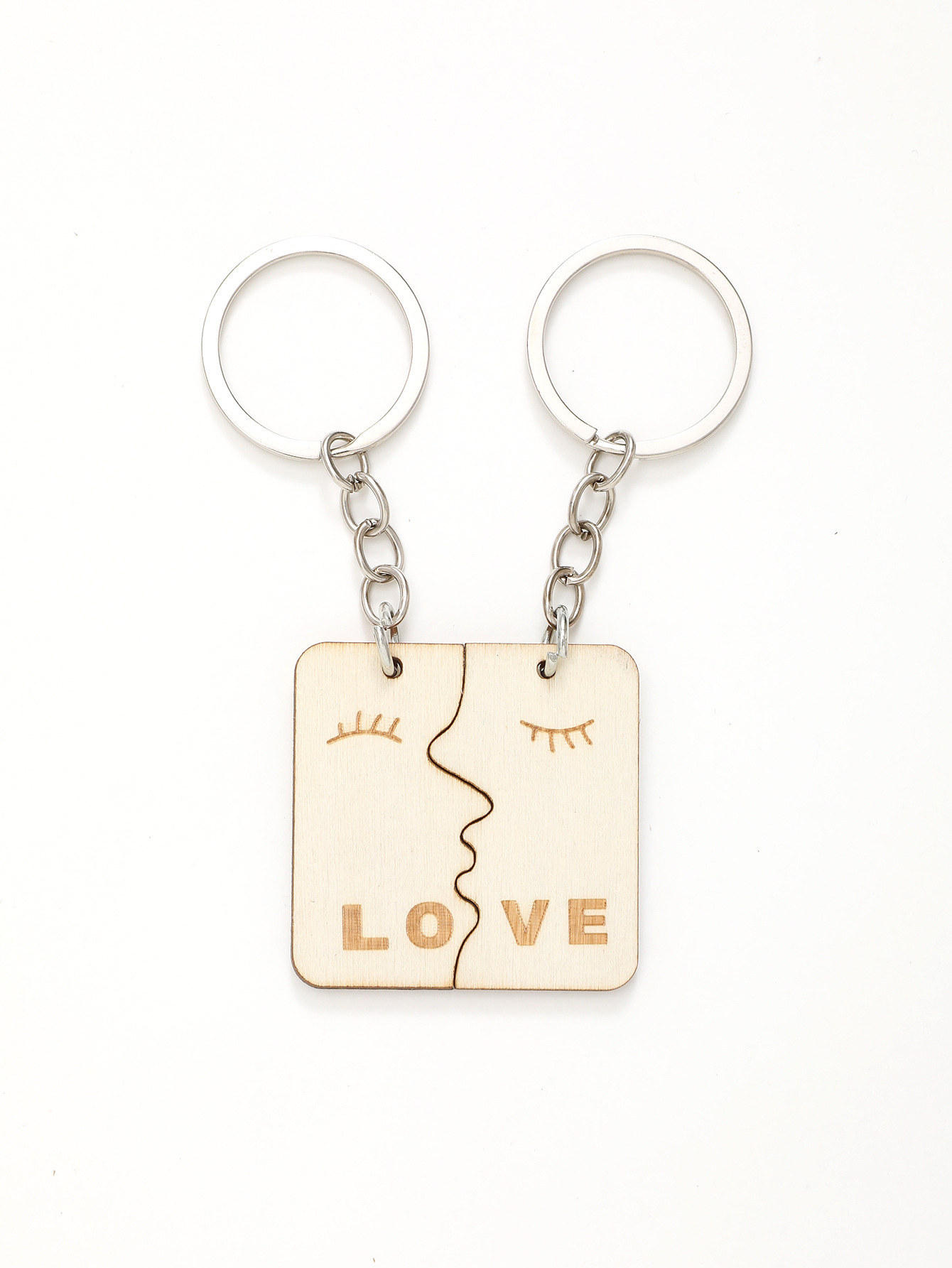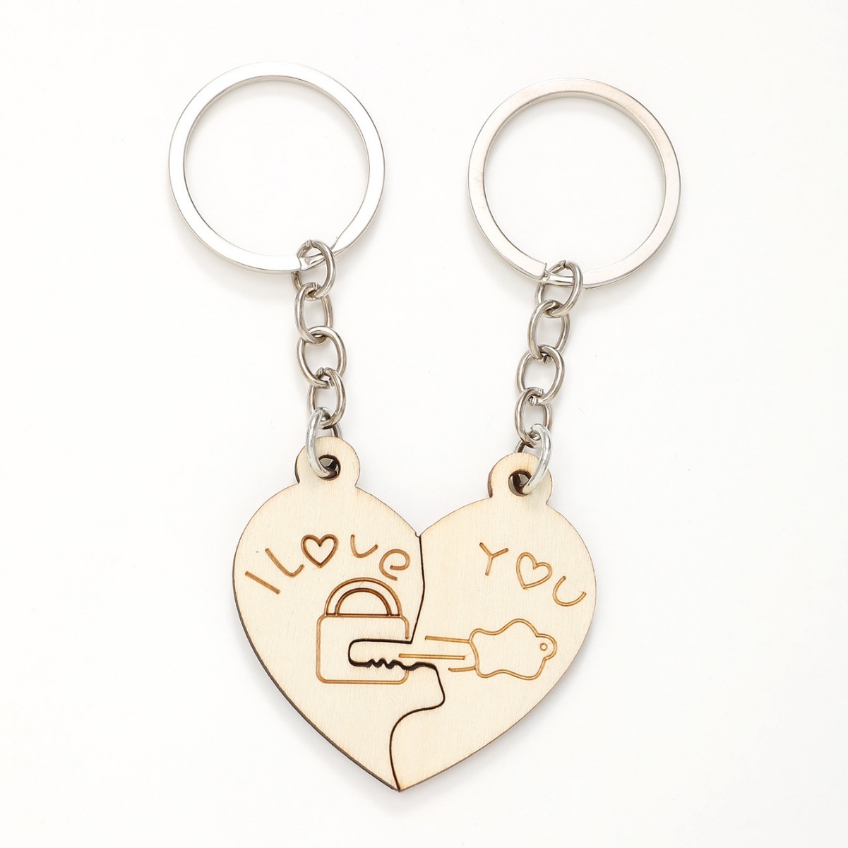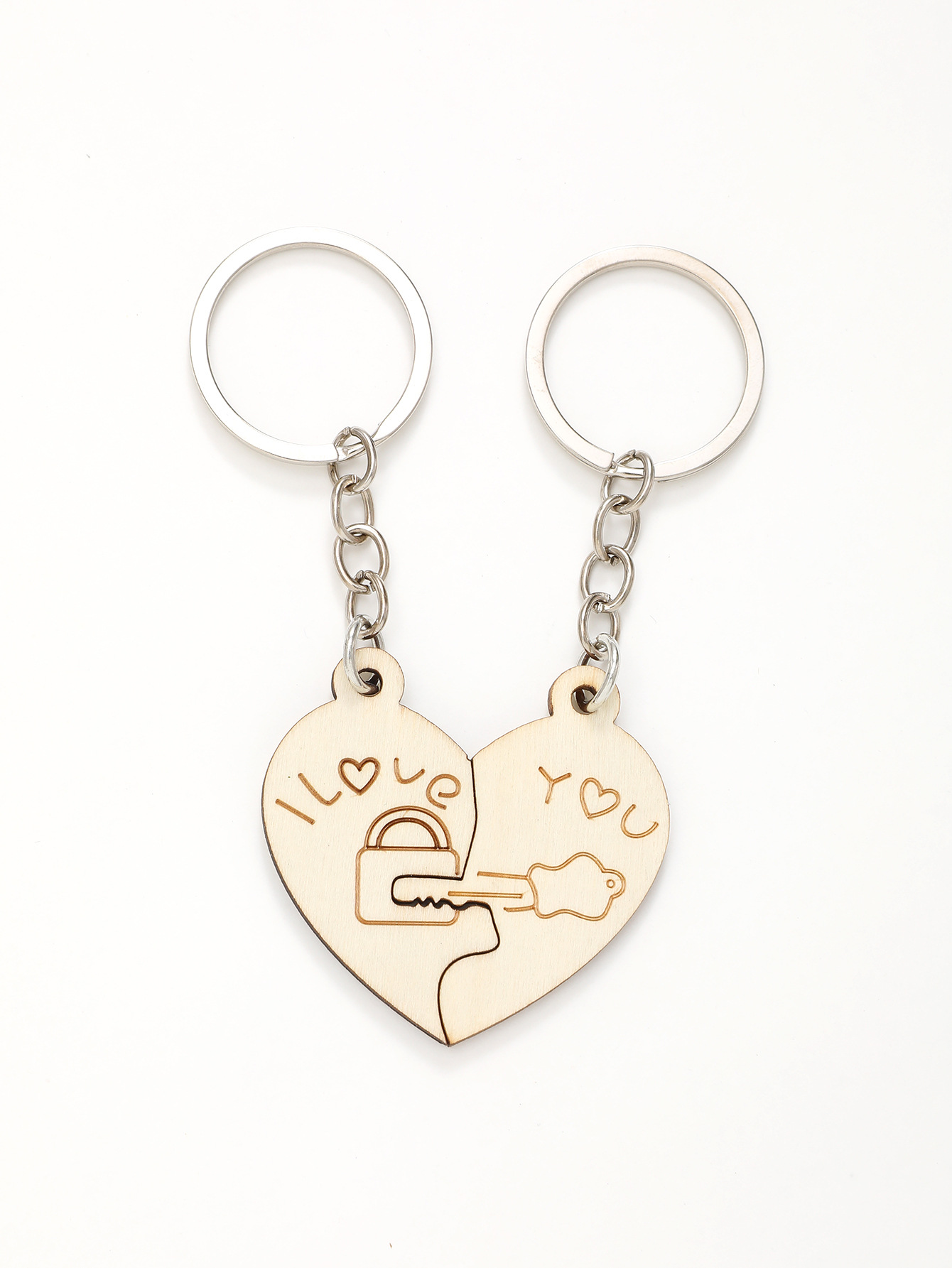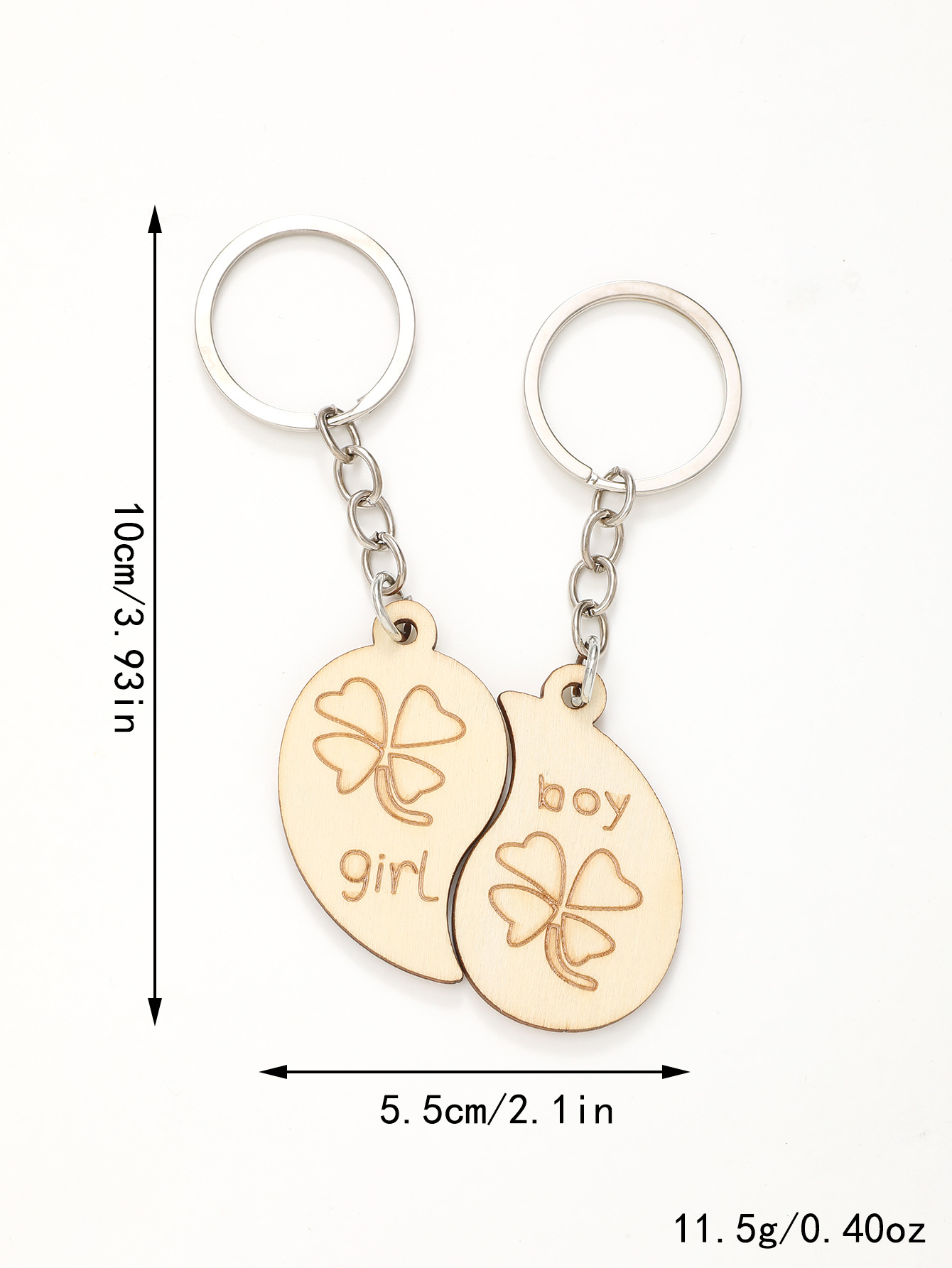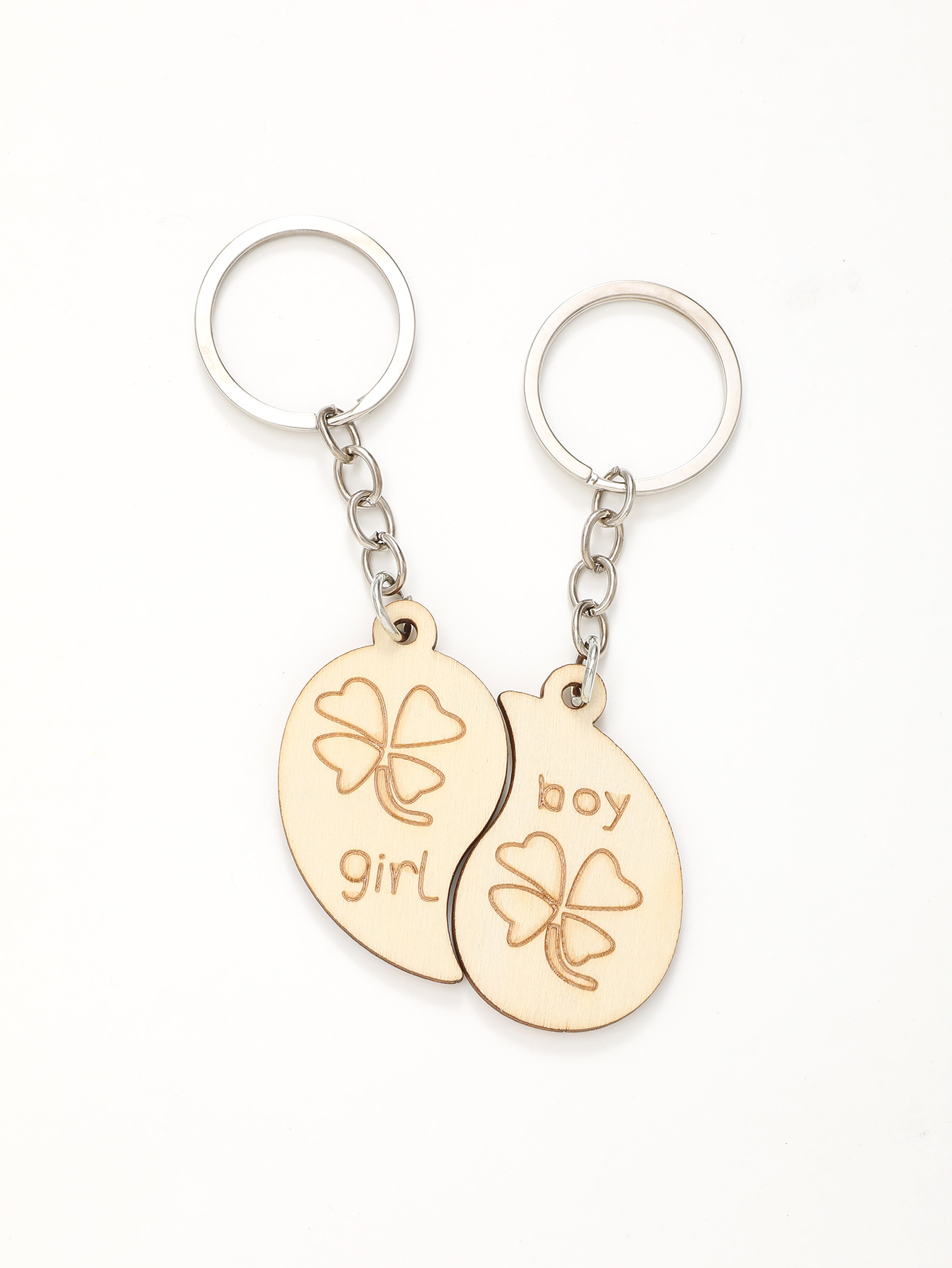 木质钥匙扣情侣礼物木质创意挂件四叶草木片激光刻印速卖通亚马逊