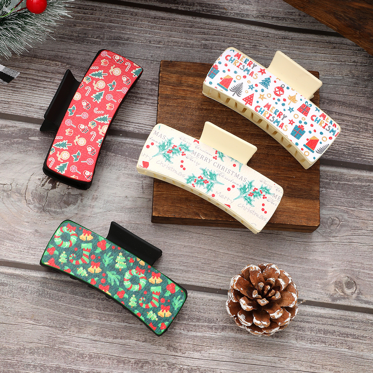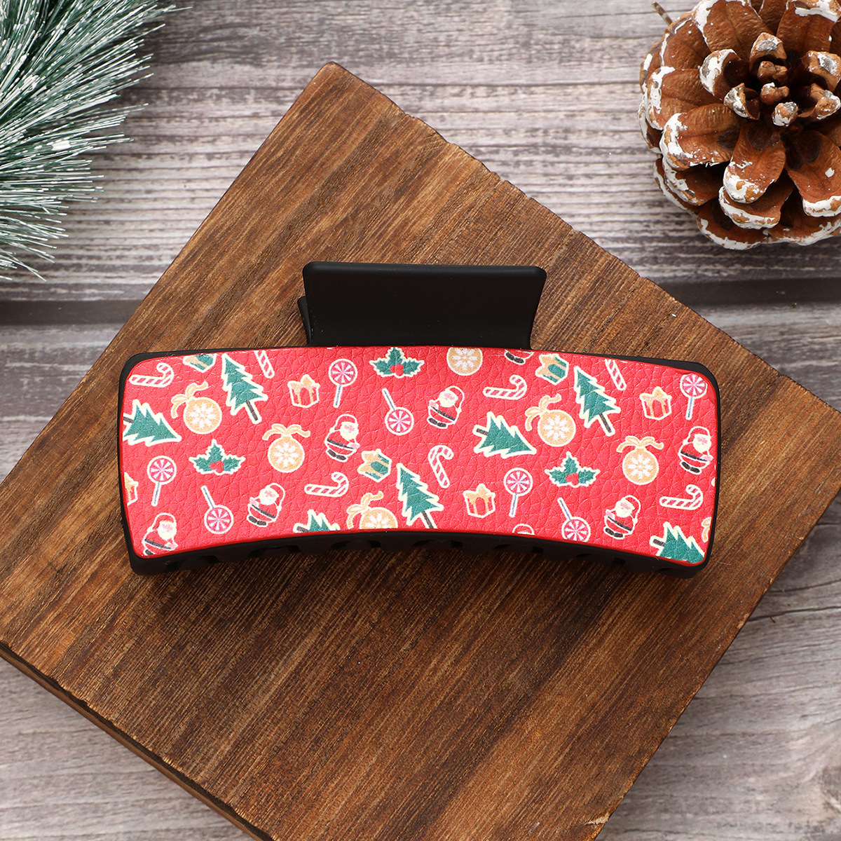 跨境圣诞节圣诞老人圣诞树皮革发夹女士鲨鱼抓夹亚马逊速卖通