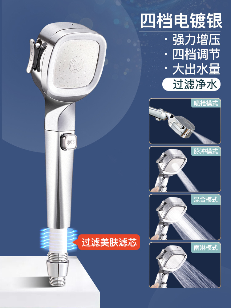 抖音直播四档增压止水花洒手持淋浴花洒头莲蓬头淋浴冷热花洒套装
