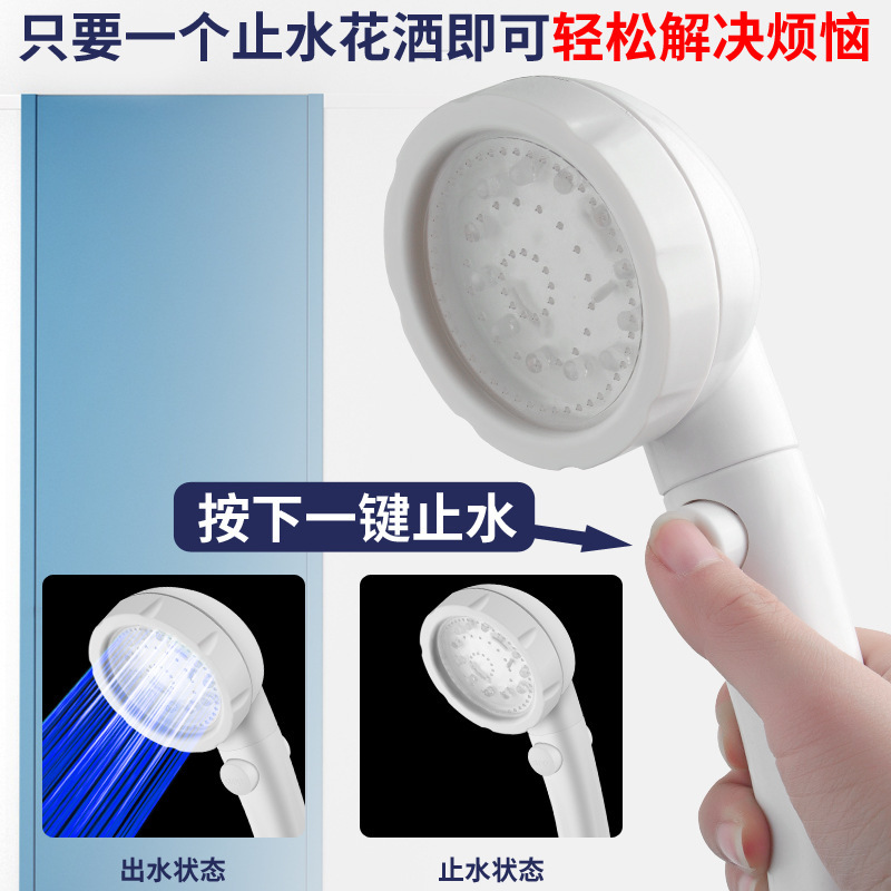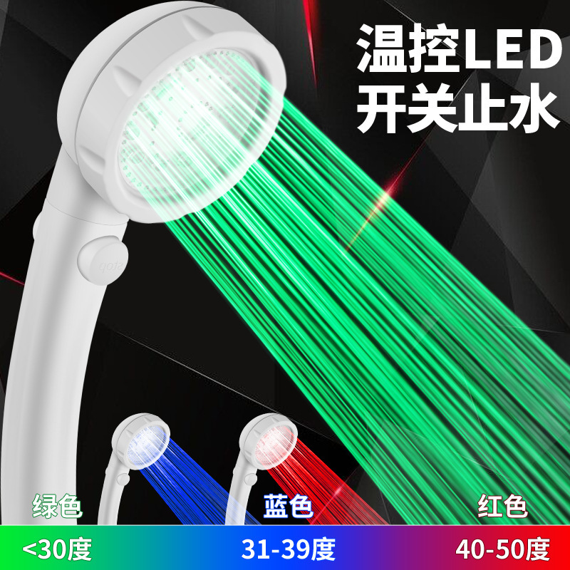 跨境光疗花洒 LED负离子淋浴花洒增压节水温控七彩手持喷头花洒