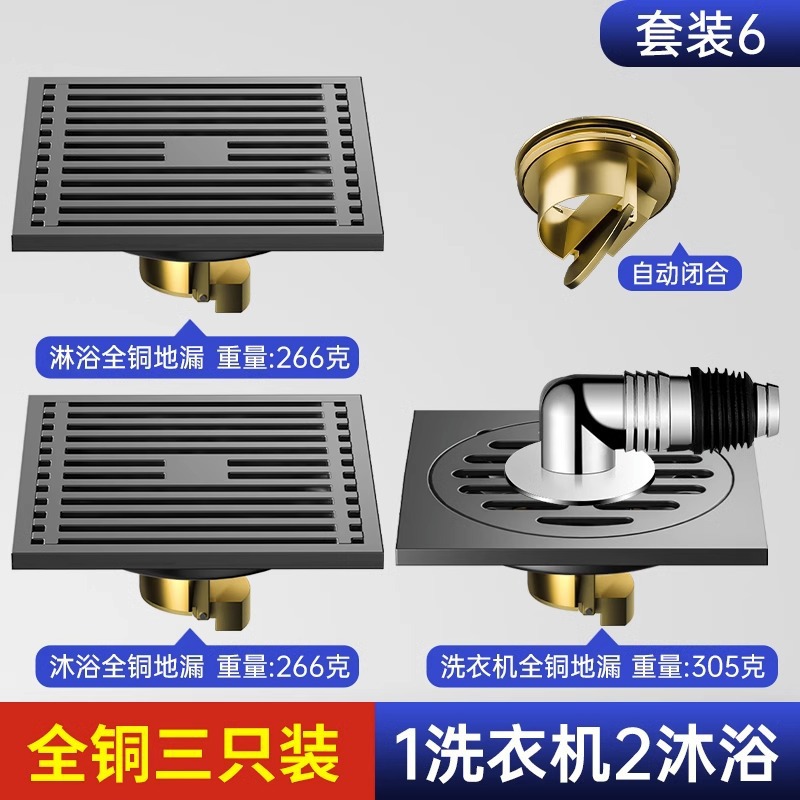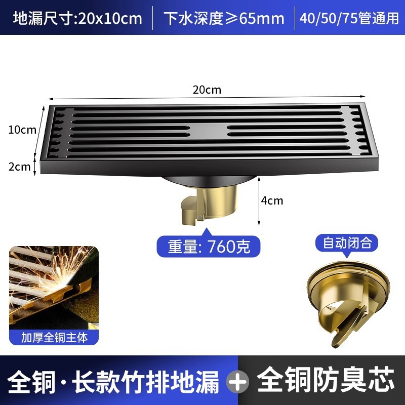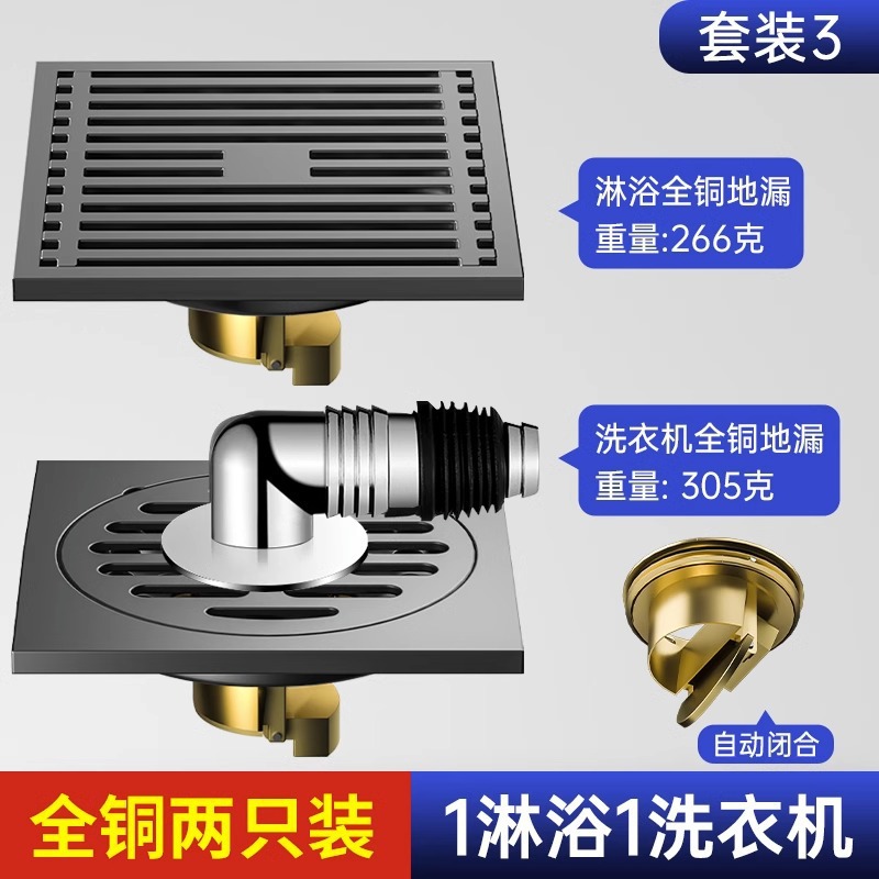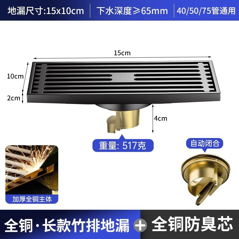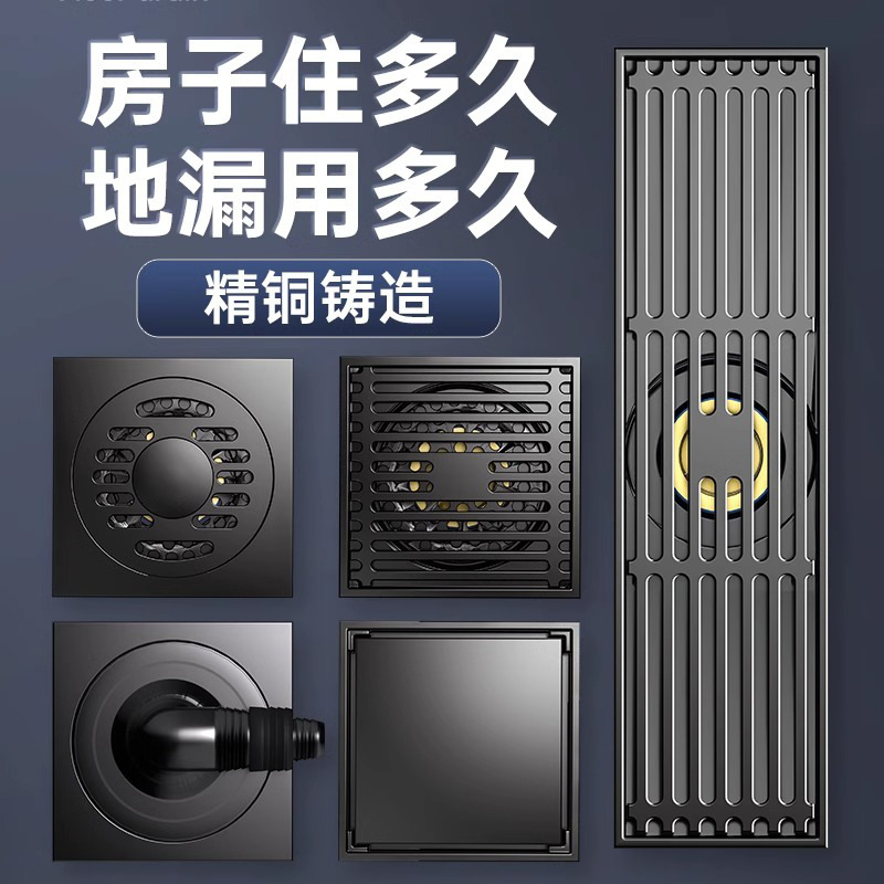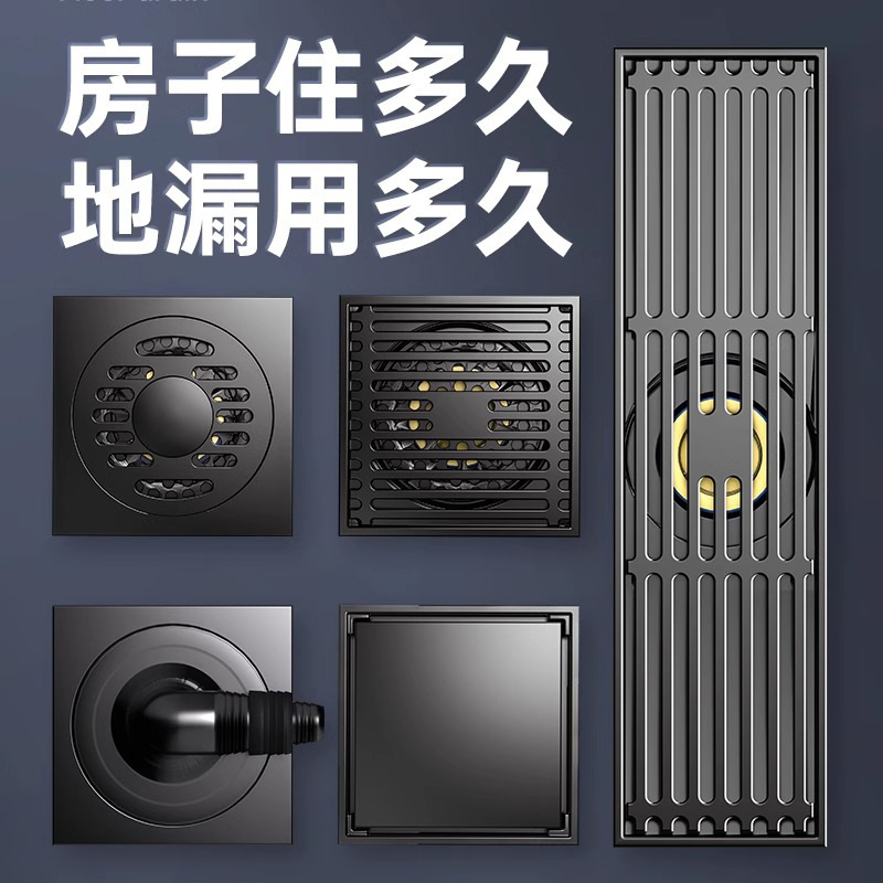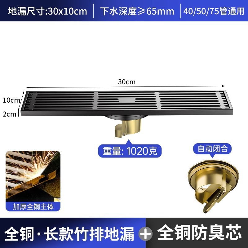 沃尔德浴室长条地漏地流全铜防臭器不锈钢卫生间洗衣机下水二合一